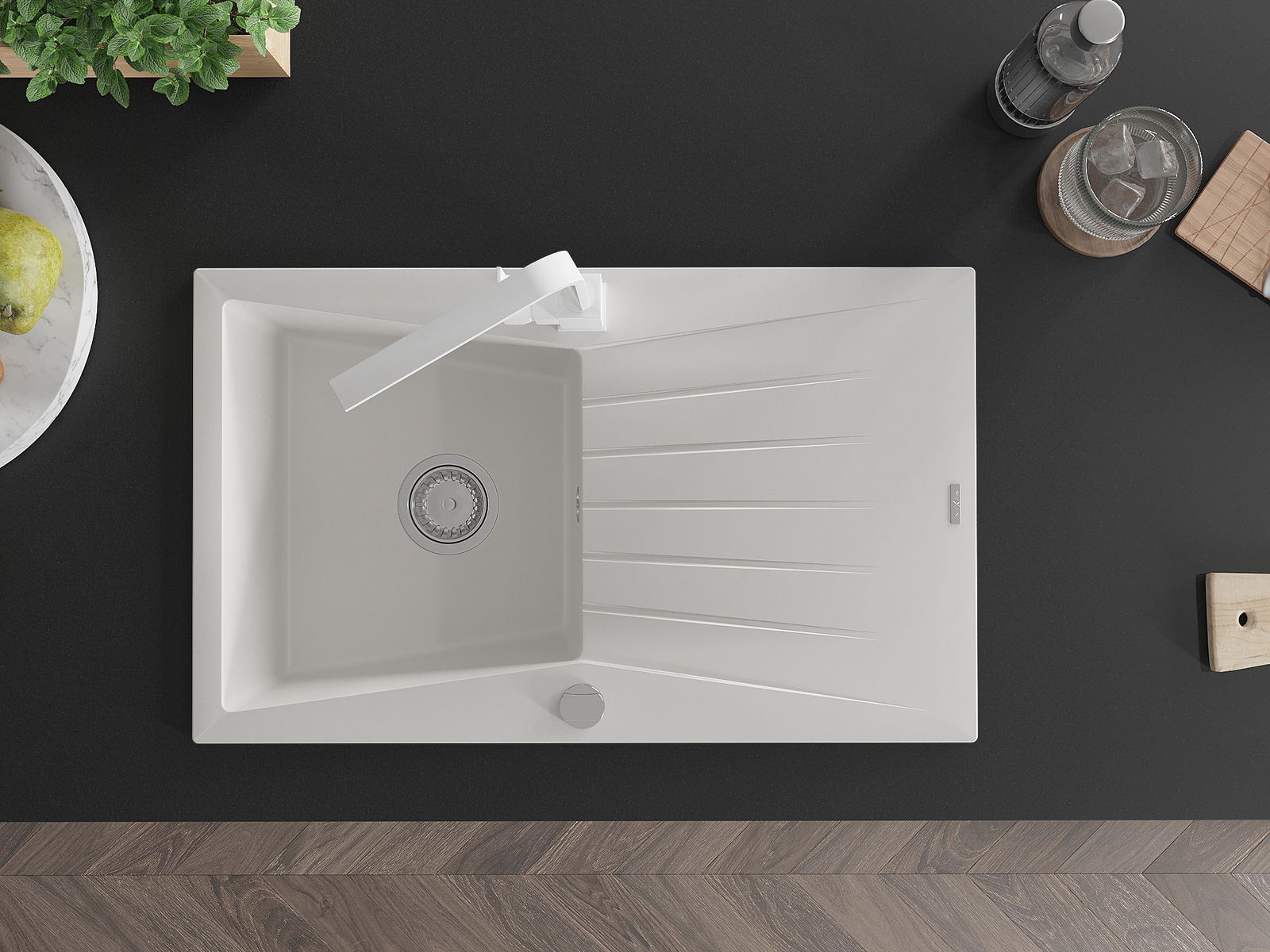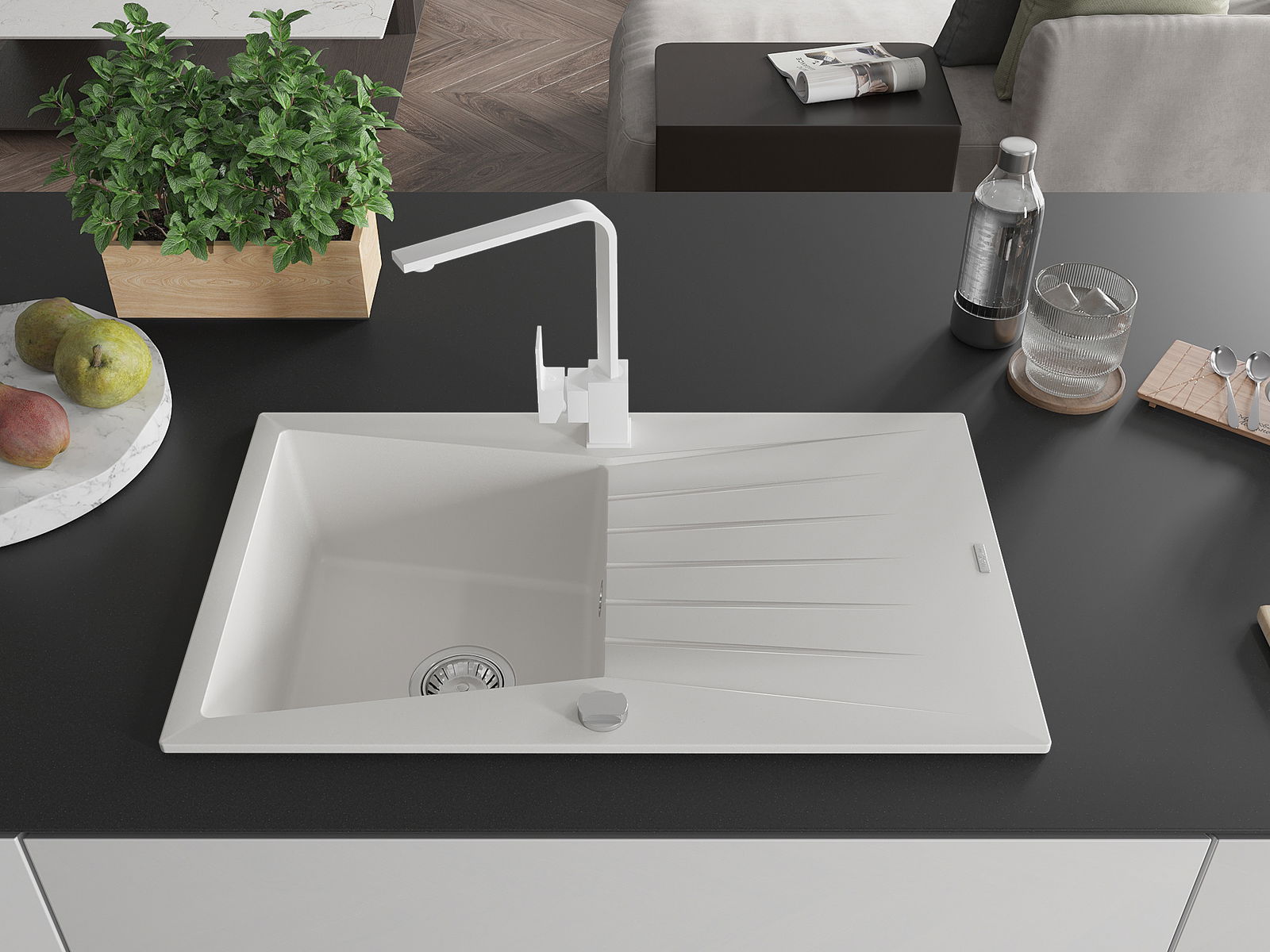 La surface de l'évier est très bien trempée et se distingue par une résistance exceptionnelle aux dommages mécaniques et aux rayures. Ce matériau durable vous permettra de profiter de son bel aspect pendant de nombreuses années.