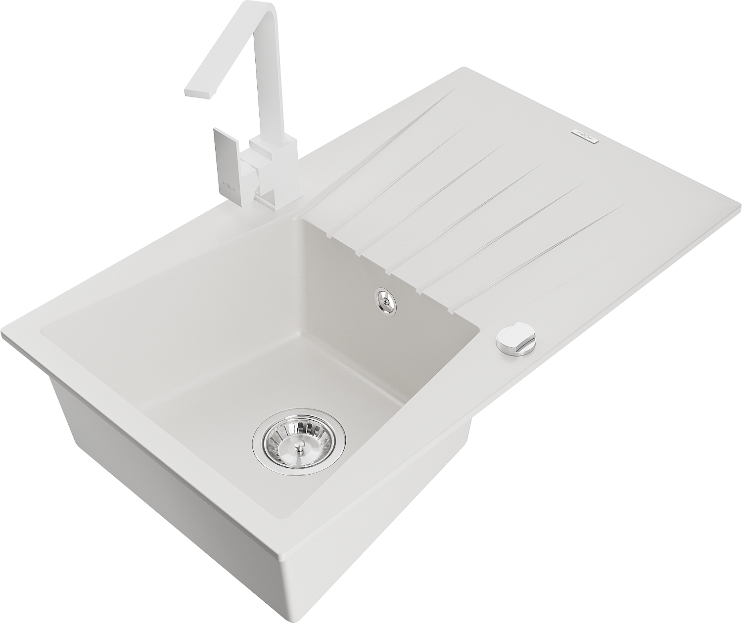 Mexen Cesar évier en granit à 1 bac avec égouttoir et robinet de cuisine Rita, blanc - 6514-20-670300-20