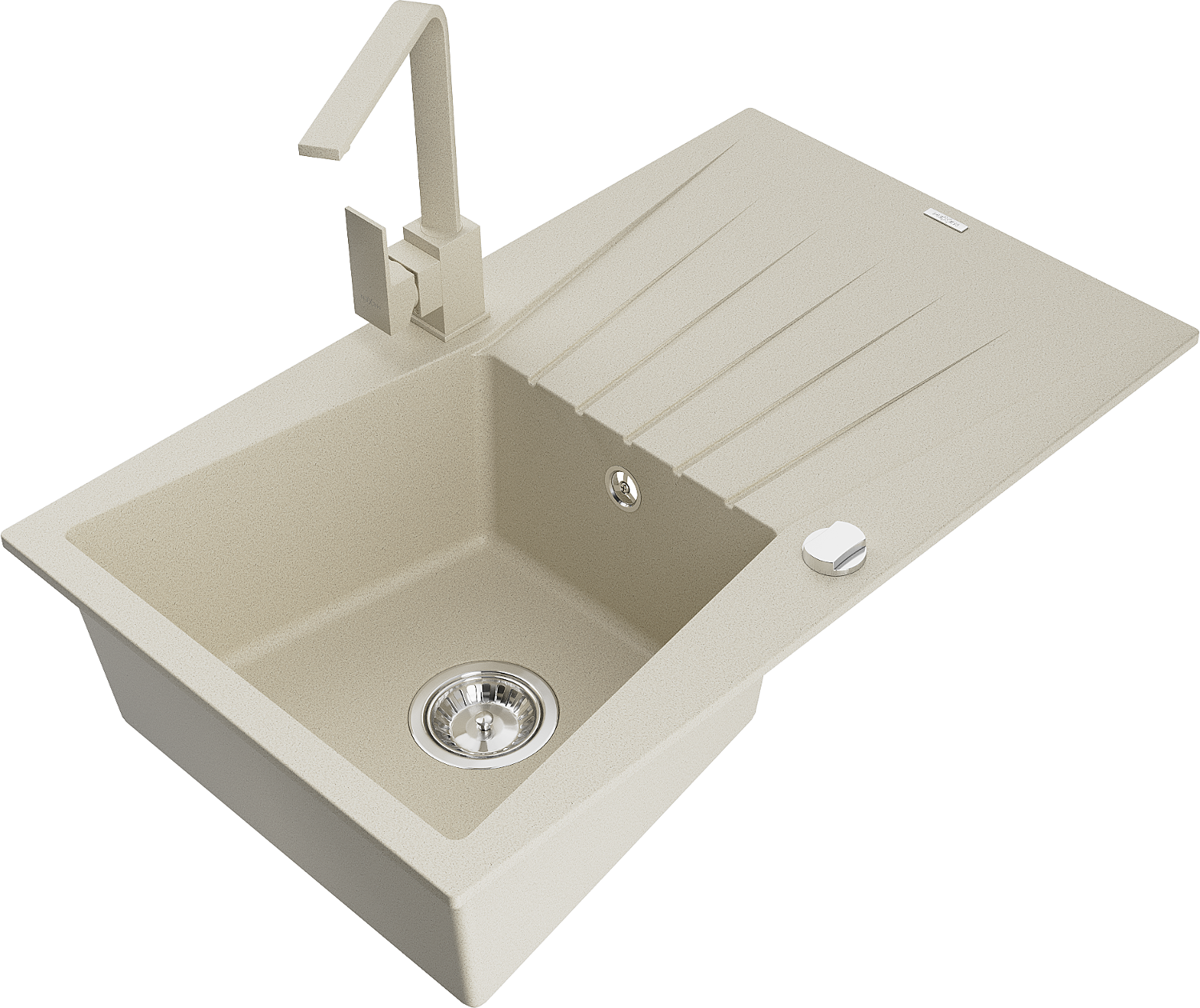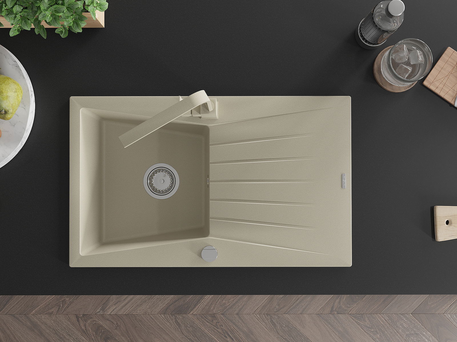 Mexen Cesar évier de cuisine en granit 1-bassin avec égouttoir et robinet de cuisine Rita, beige - 6514-69-670300-69