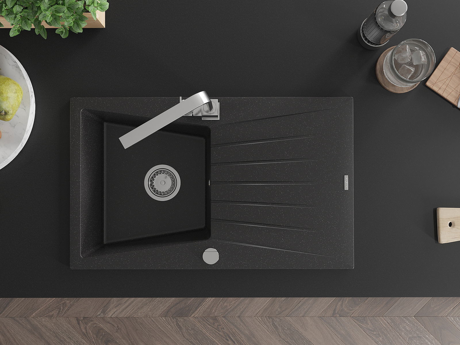 La surface de l'évier est très bien trempée et se distingue par une résistance exceptionnelle aux dommages mécaniques et aux rayures. Ce matériau durable vous permettra de profiter de son bel aspect pendant de nombreuses années.
