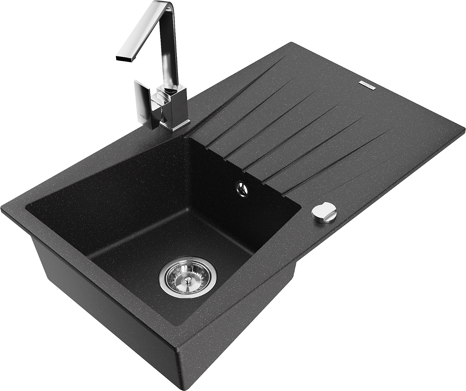 Mexen Cesar évier en granit 1 bac avec égouttoir et robinet de cuisine Rita, noir/argent métallisé - 6514-73-670300-00