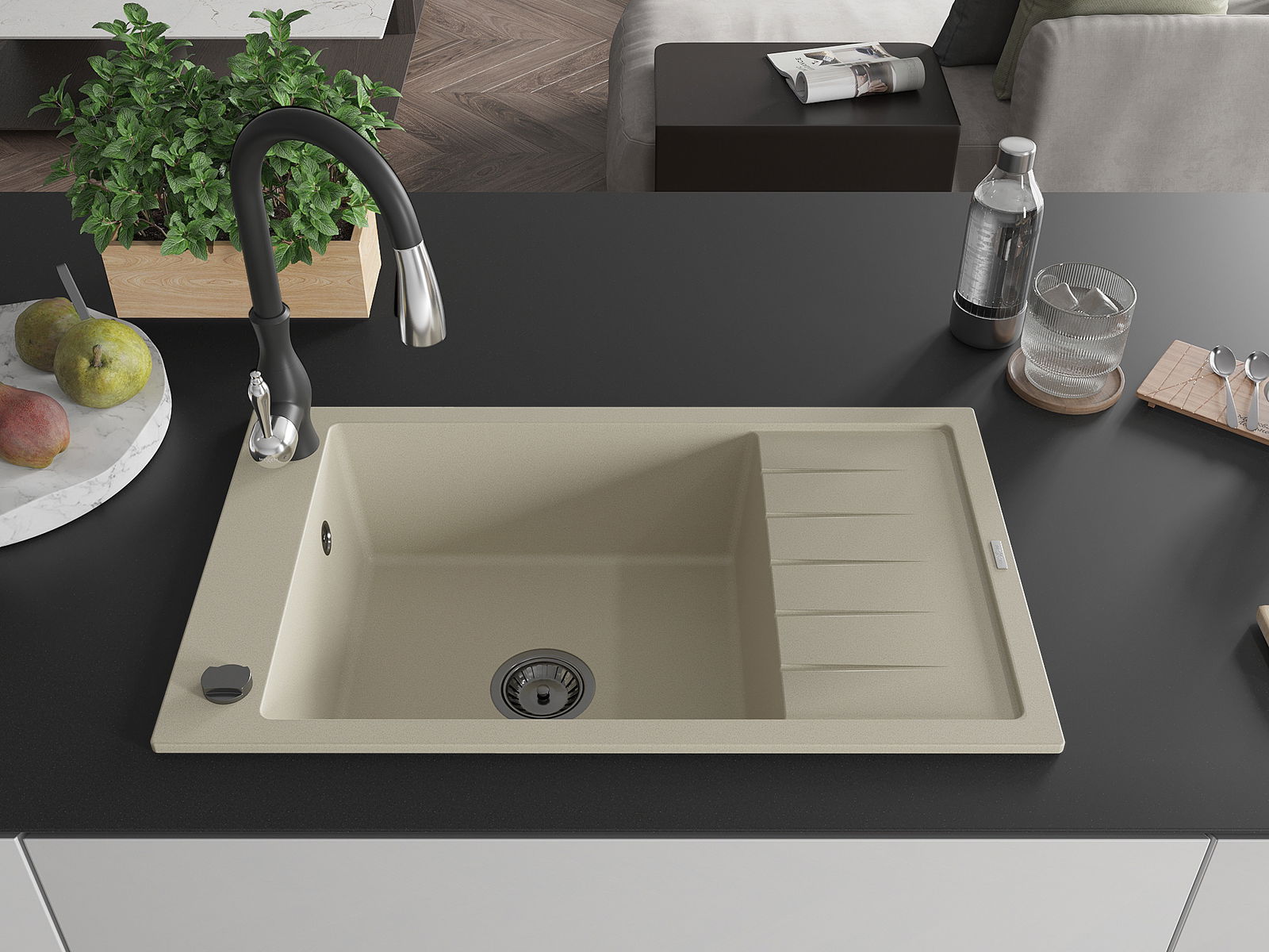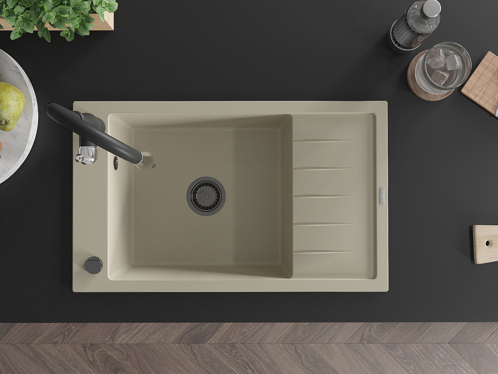 L'évier est fabriqué en granit de haute qualité. Il constitue un complément élégant et surtout pratique pour toute cuisine, quel que soit son style. La qualité et la durabilité du granit garantissent de nombreuses années d'utilisation.