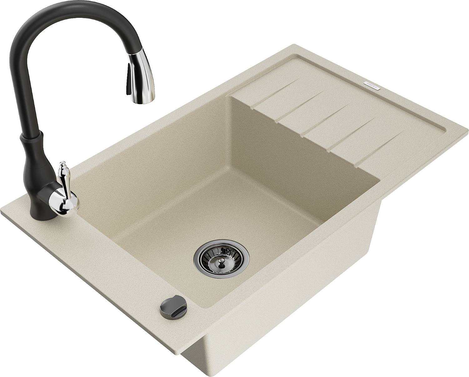 Mexen Elias évier en granit 1 bac avec égouttoir et mitigeur de cuisine Savita, beige - 6511-69-672601-70