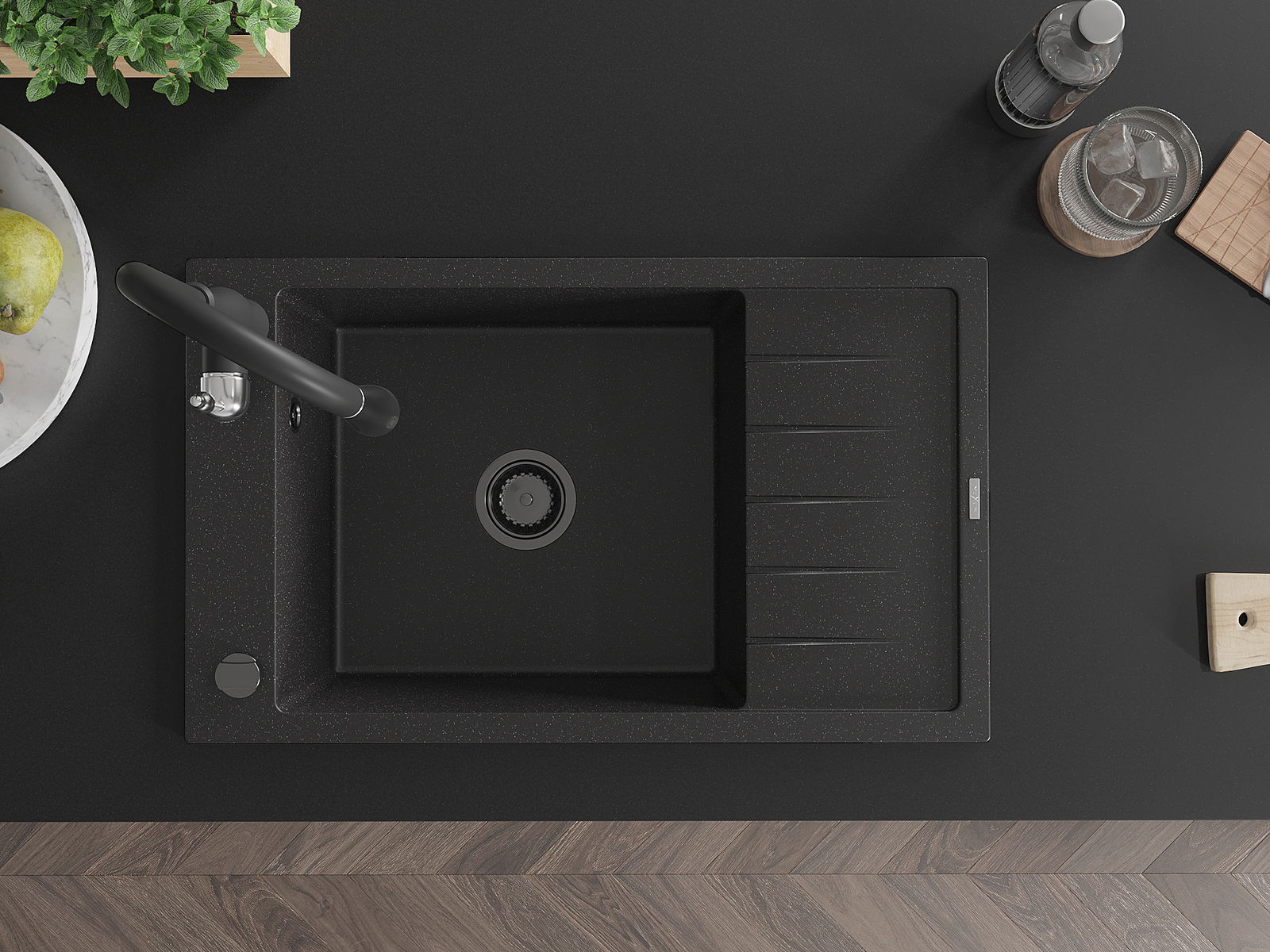 L'évier est fabriqué en granit de haute qualité. Il constitue un complément élégant et surtout pratique pour toute cuisine, quel que soit son style. La qualité et la durabilité du granit garantissent de nombreuses années d'utilisation.