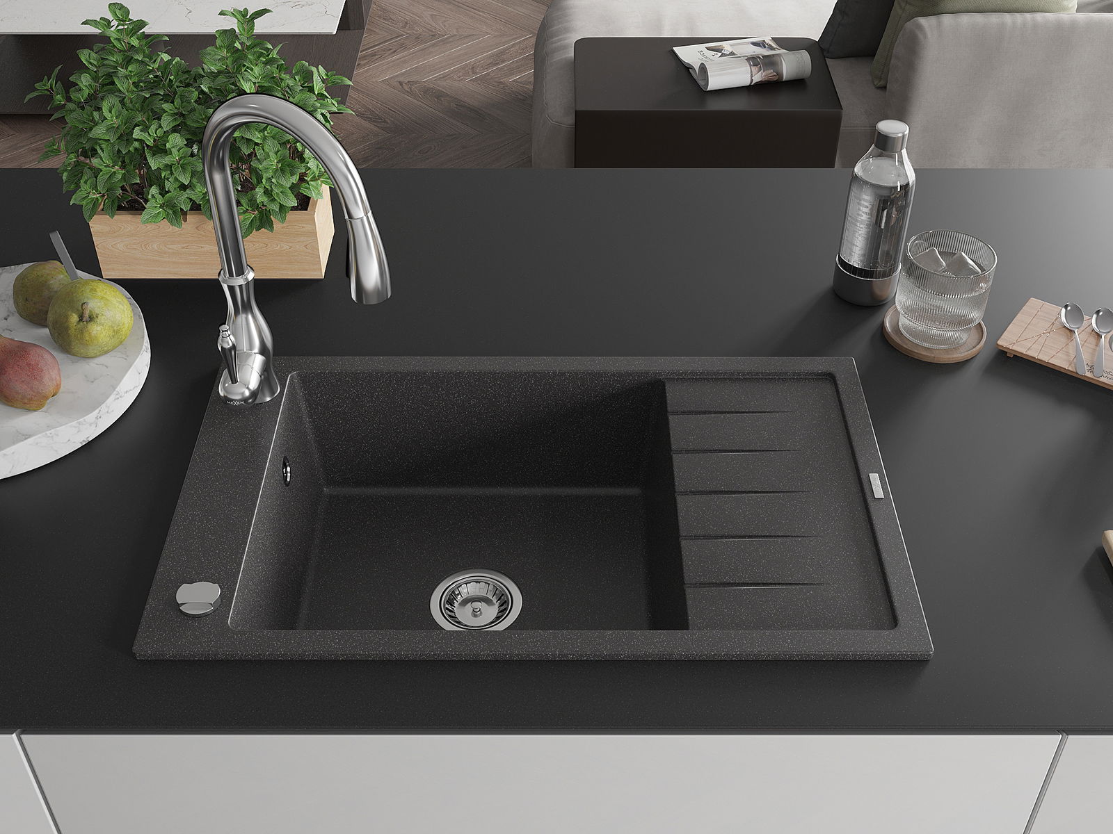 L'évier est fabriqué en granit de haute qualité. Il constitue un complément élégant et surtout pratique pour toute cuisine, quel que soit son style. La qualité et la durabilité du granit garantissent de nombreuses années d'utilisation.