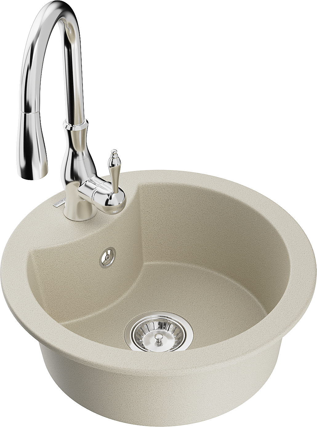 Mexen Diego évier en granit 1 bac avec robinet de cuisine Savita, beige - 6512-69-672601-00