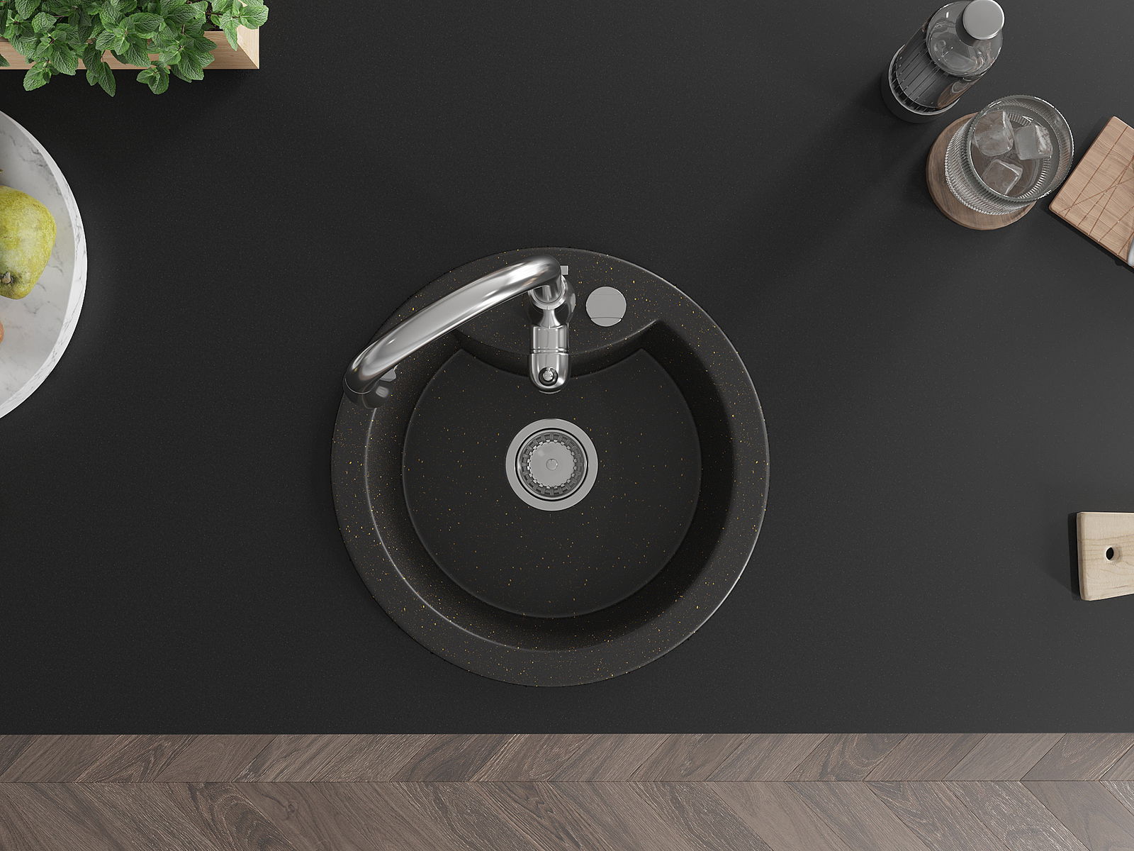 L'évier est doté d'un trou fraisé de 35 mm de diamètre pour l'auto-perçage. Il peut notamment accueillir un distributeur de liquide, ce qui éliminera les bouteilles en plastique dans la cuisine et lui apportera une finition élégante.