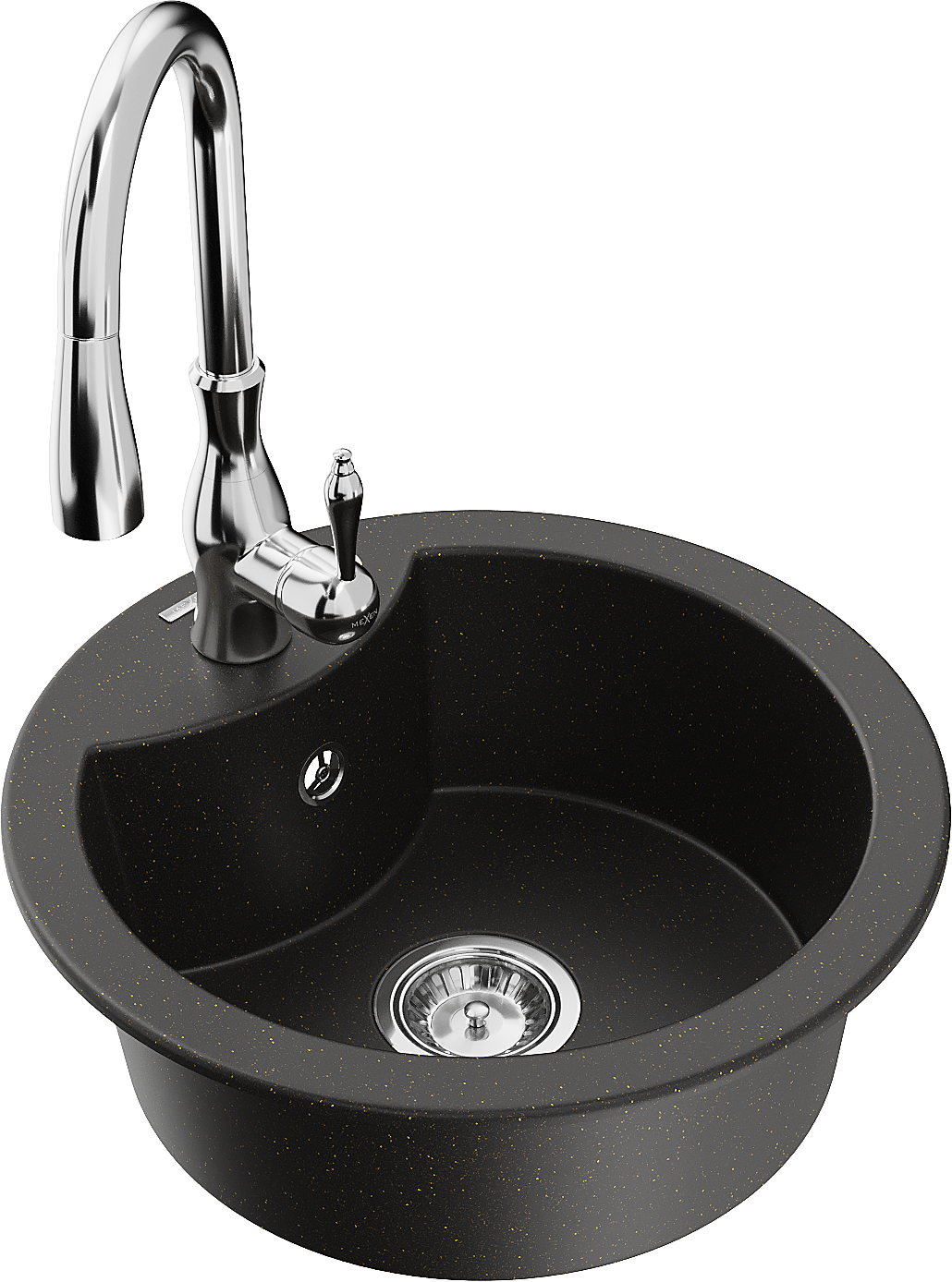 Mexen Diego évier en granit 1 bac avec robinet de cuisine Savita, noir/or métallisé - 6512-75-672601-00