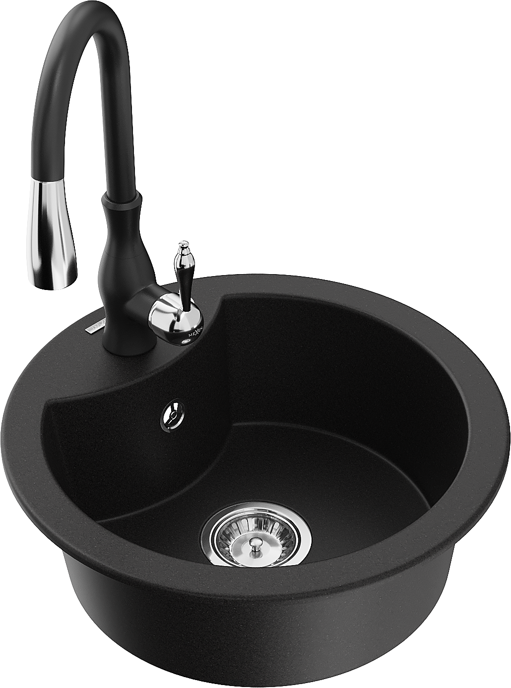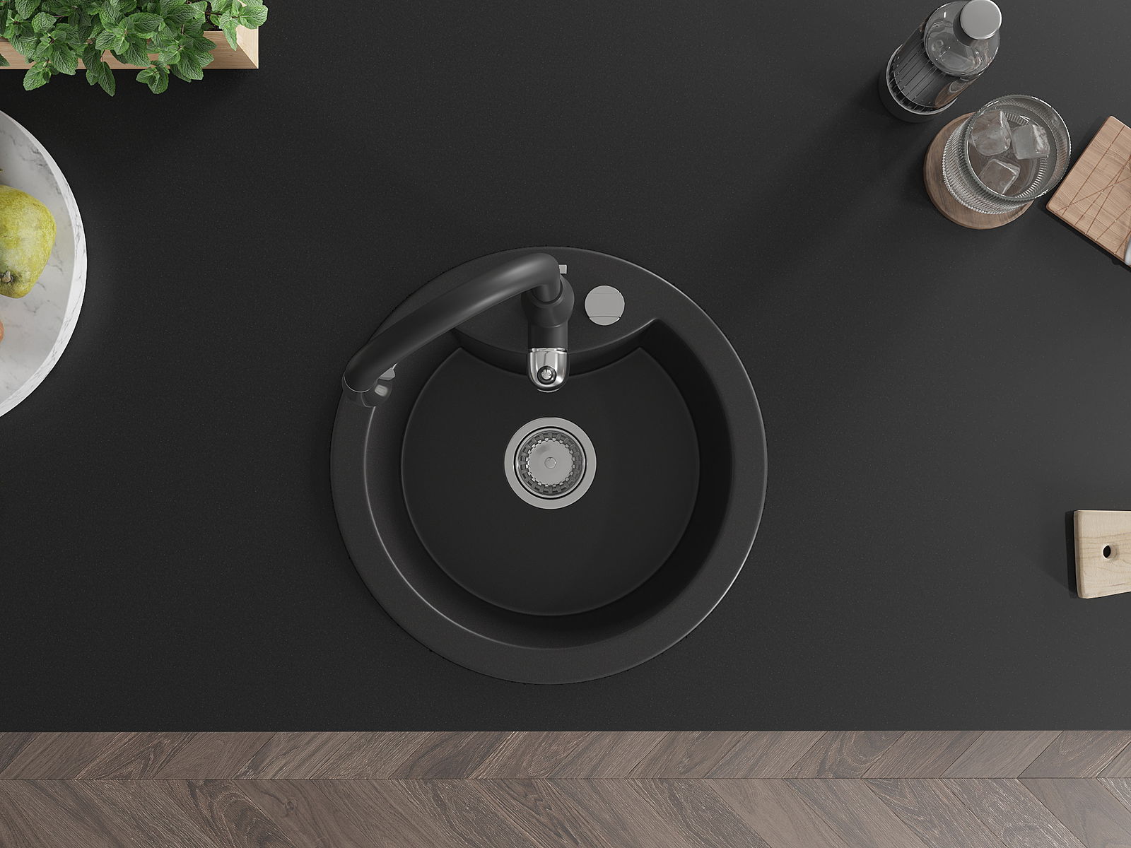 Mexen Diego évier en granit à 1 bac avec robinet de cuisine Savita, noir - 6512-77-672601-70