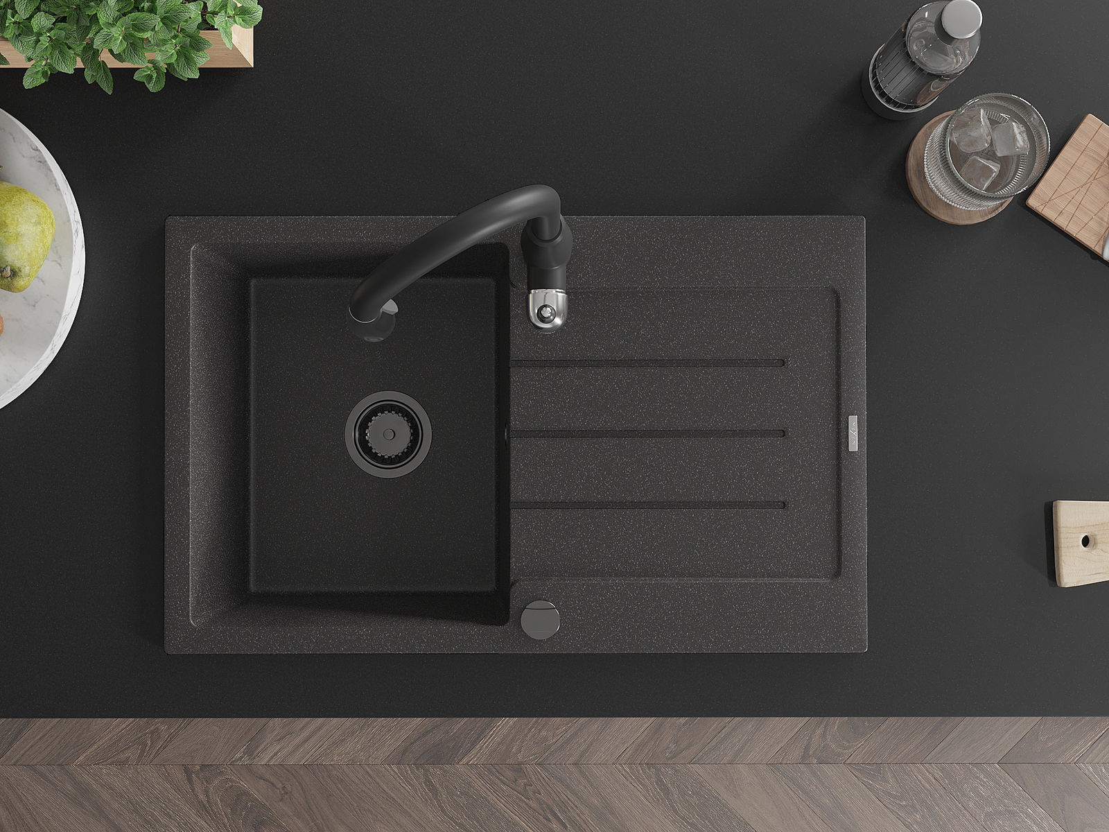 L'évier est fabriqué en granit de haute qualité. Il constitue un complément élégant et surtout pratique pour toute cuisine, quel que soit son style. La qualité et la durabilité du granit garantissent de nombreuses années d'utilisation.