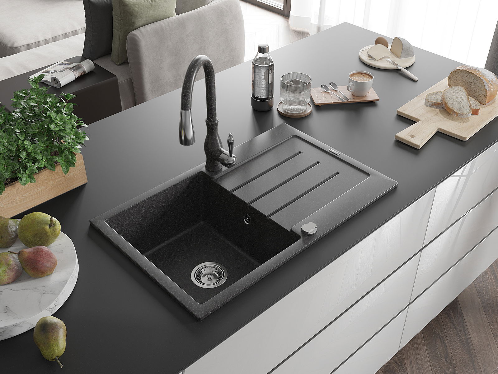 L'évier est fabriqué en granit de haute qualité. Il constitue un complément élégant et surtout pratique pour toute cuisine, quel que soit son style. La qualité et la durabilité du granit garantissent de nombreuses années d'utilisation.