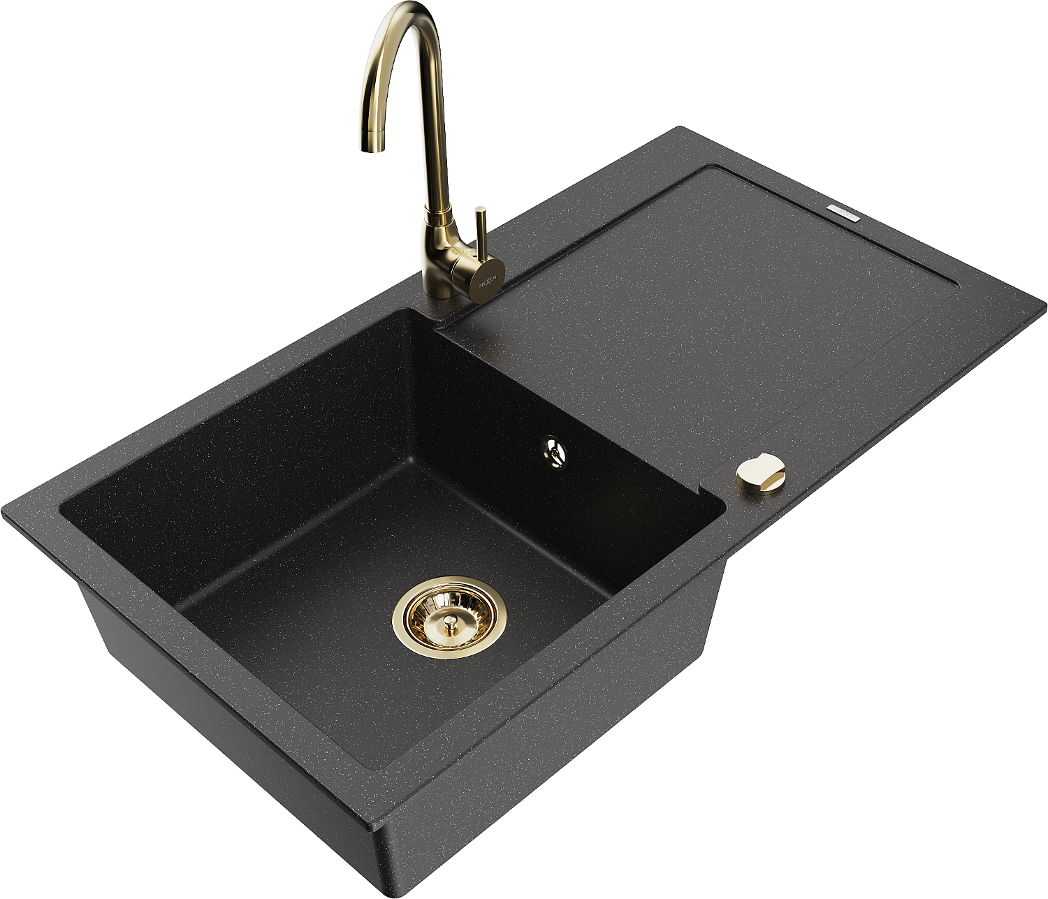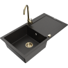 Mexen Leo évier en granit 1 bac avec égouttoir et robinet de cuisine Telma, noir/argenté métallisé - 6501-73-670200-50