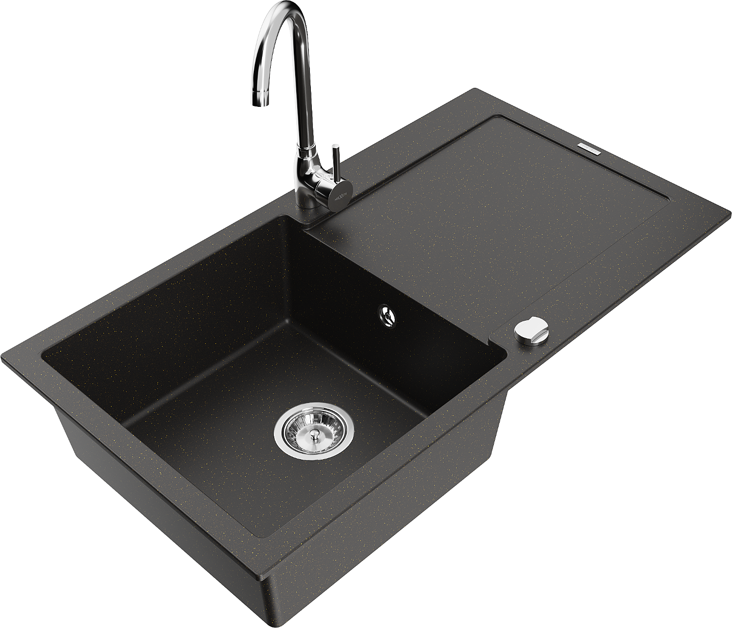 Mexen Leo évier en granit 1 bac avec égouttoir et robinet de cuisine Telma, noir/or métallisé - 6501-75-670200-00