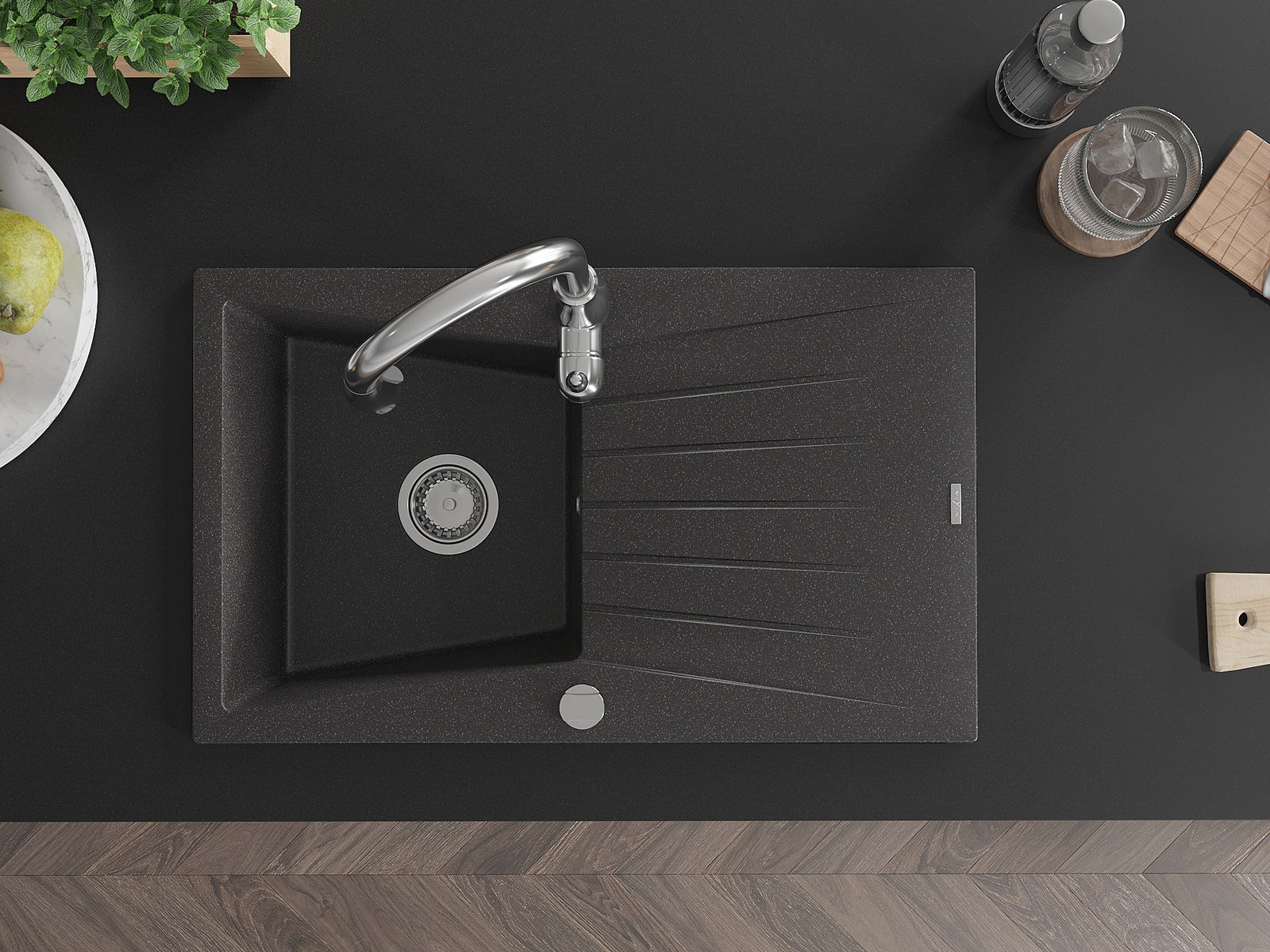 La surface de l'évier est très bien durcie, elle se distingue par une résistance exceptionnelle aux dommages mécaniques et aux rayures. Le matériau durable de fabrication permet de profiter de l'apparence de l'évier pendant de nombreuses années d'utilisation.