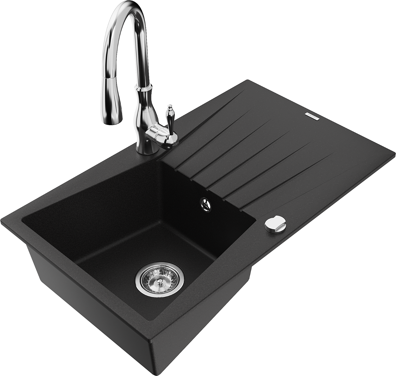 Mexen Cesar évier de cuisine en granit à 1 bac avec égouttoir et robinet de cuisine Savita, noir - 6514-77-672601-00