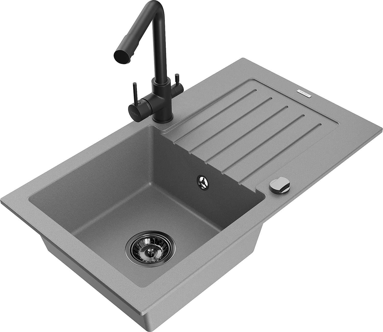 Mexen Pablo évier en granit à 1 bac avec égouttoir et robinet de cuisine Duero, gris - 6510-71-671600-70-B