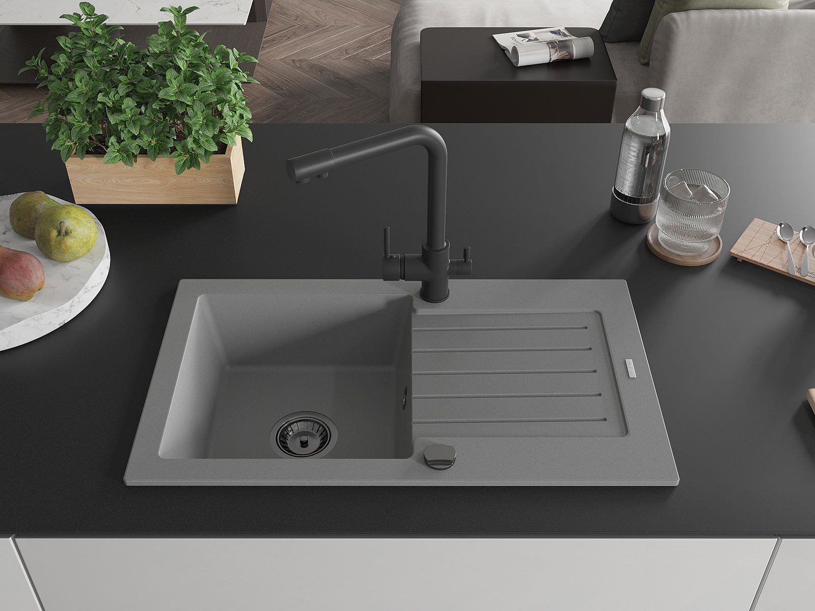 L'évier a été fabriqué en granit de haute qualité. Il constitue un complément élégant et surtout pratique pour chaque cuisine, quel que soit son style. La haute qualité et la durabilité du granit garantissent une utilisation de plusieurs années.