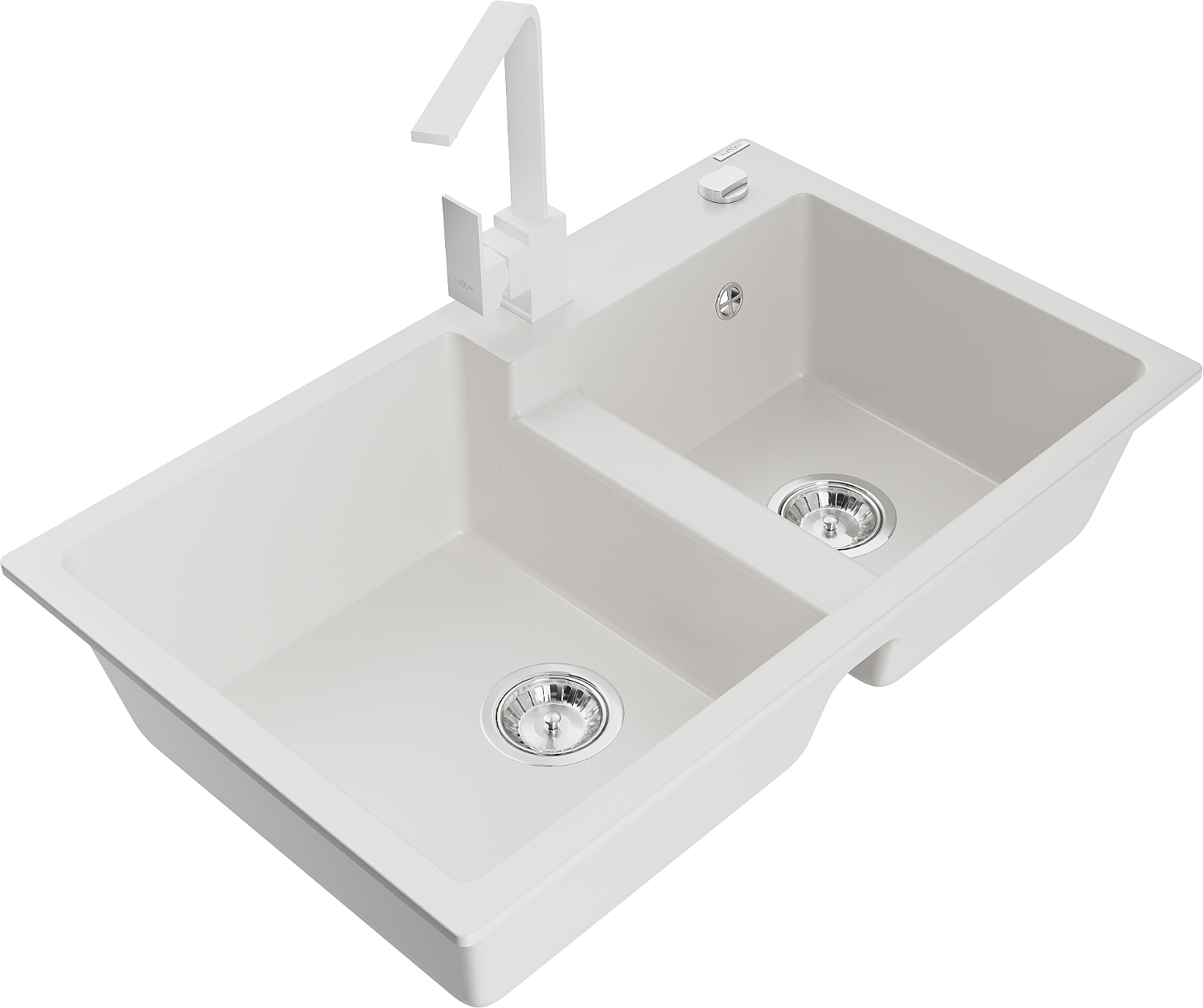Mexen Tomas évier de cuisine en granit 2 bacs avec robinet de cuisine Rita, blanc - 6516-20-670300-20