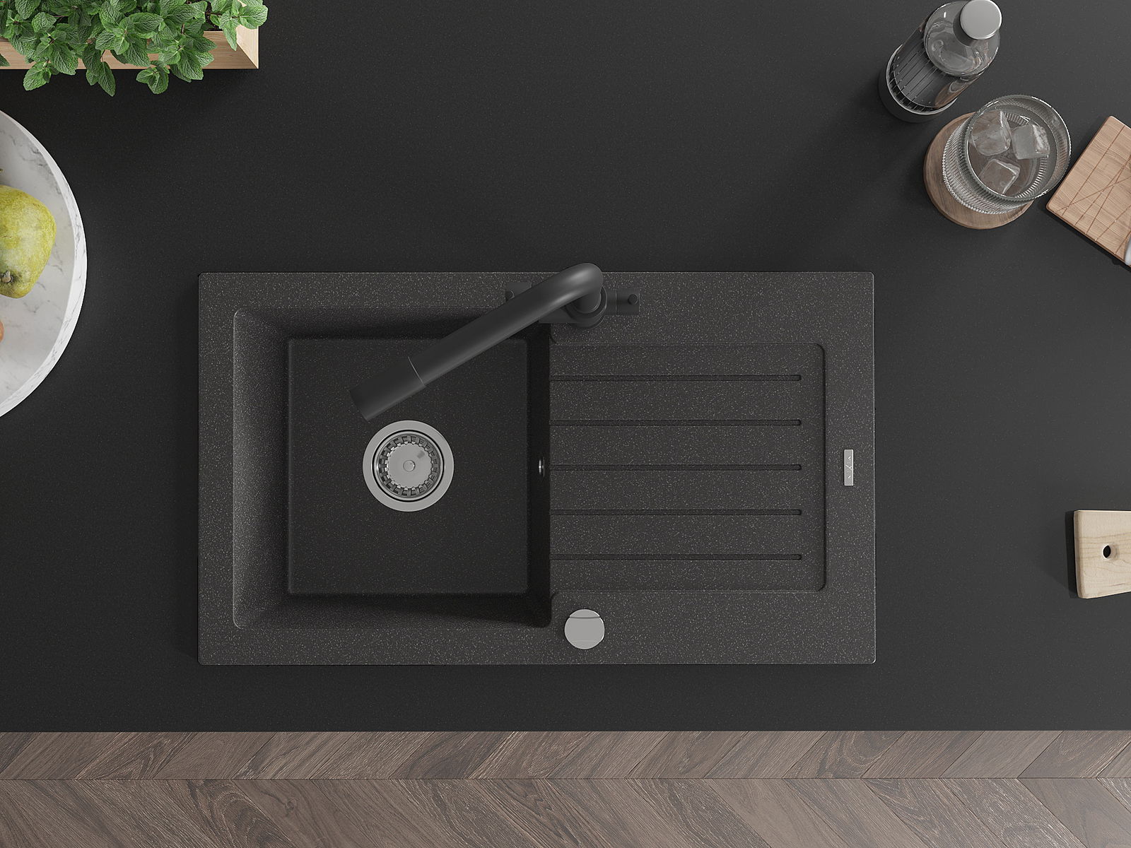 La surface de l'évier est très bien durcie, elle se distingue par une résistance exceptionnelle aux dommages mécaniques et aux rayures. Le matériau durable de fabrication permet de profiter de l'apparence de l'évier pendant de nombreuses années d'utilisation.