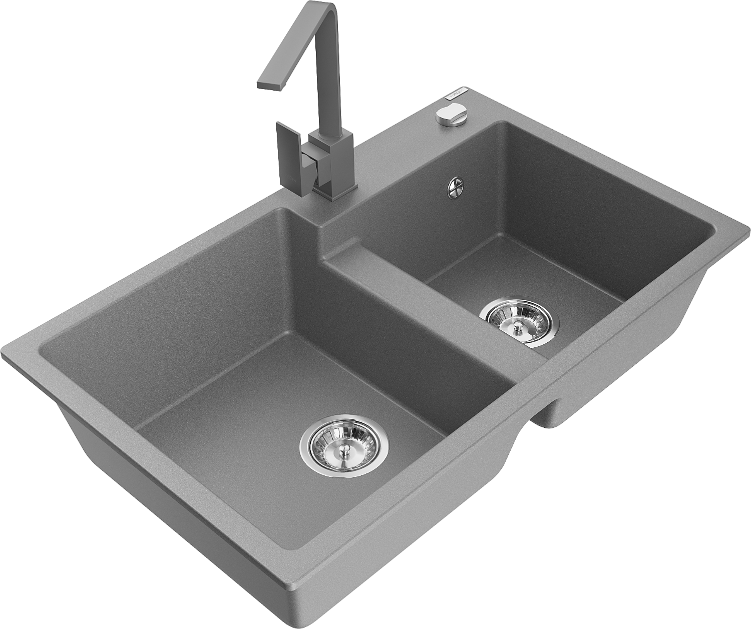 Mexen Tomas évier de cuisine en granit à 2 bacs avec robinet de cuisine Rita, gris - 6516-71-670300-71