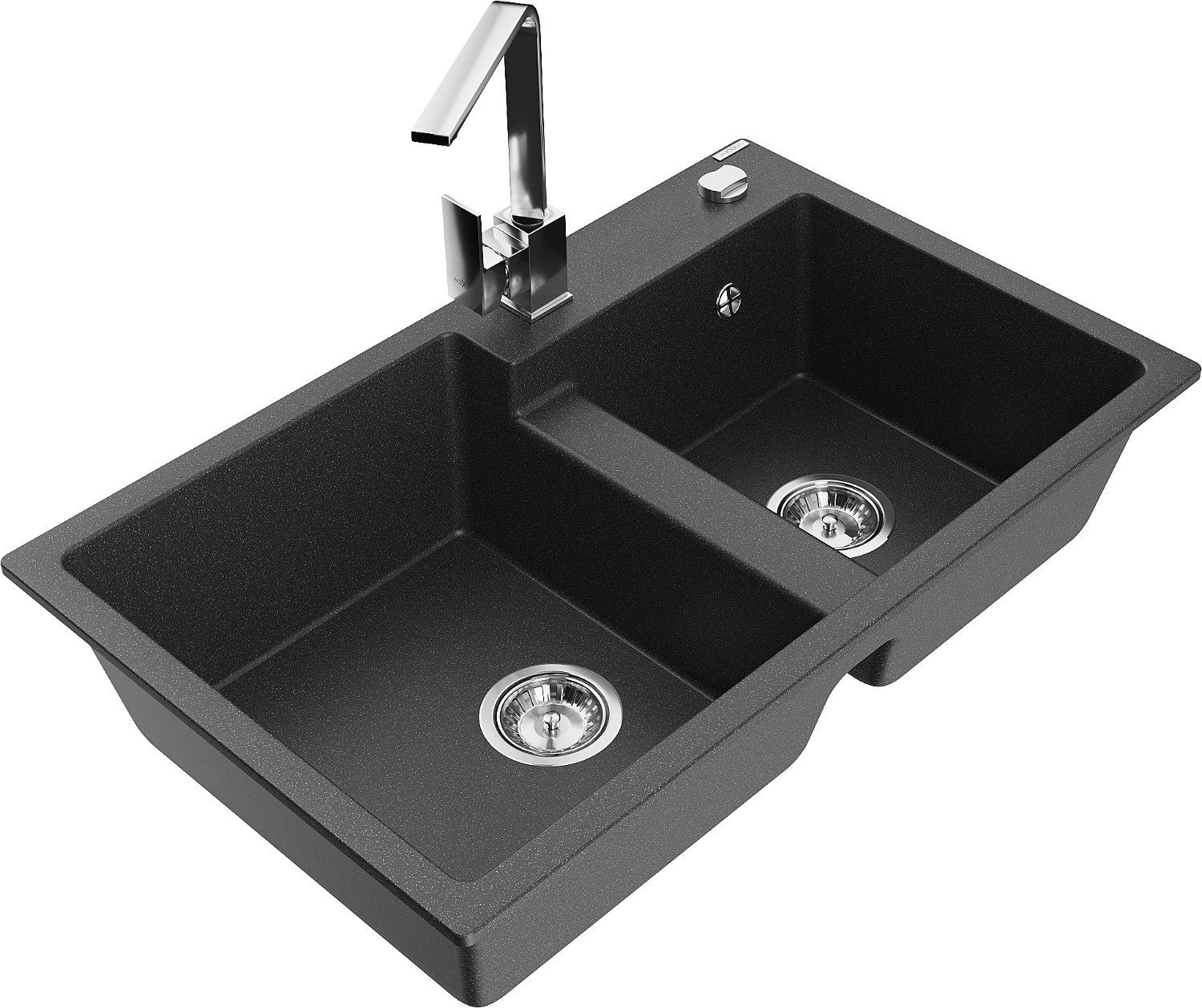 Mexen Tomas évier en granit 2 bacs avec mitigeur de cuisine Rita, noir moucheté - 6516-76-670300-00