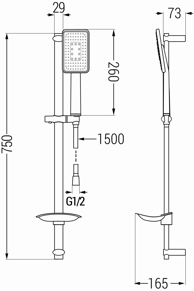 Le pommeau de douche est doté d'un jet pluie. Ce jet imite la pluie naturelle et s'écoule uniformément sur le corps. Il procure une sensation douce et relaxante pendant le bain, qui devient un véritable moment de détente.