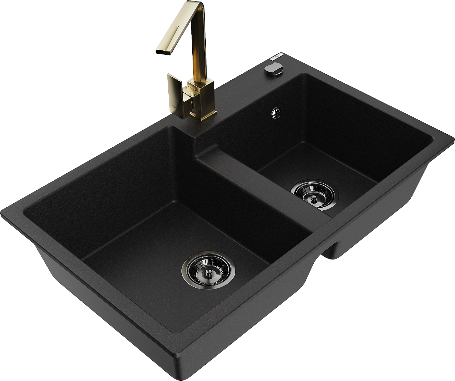 Mexen Tomas évier de cuisine en granit à 2 bacs avec robinet Rita, noir - 6516-77-670300-50-B