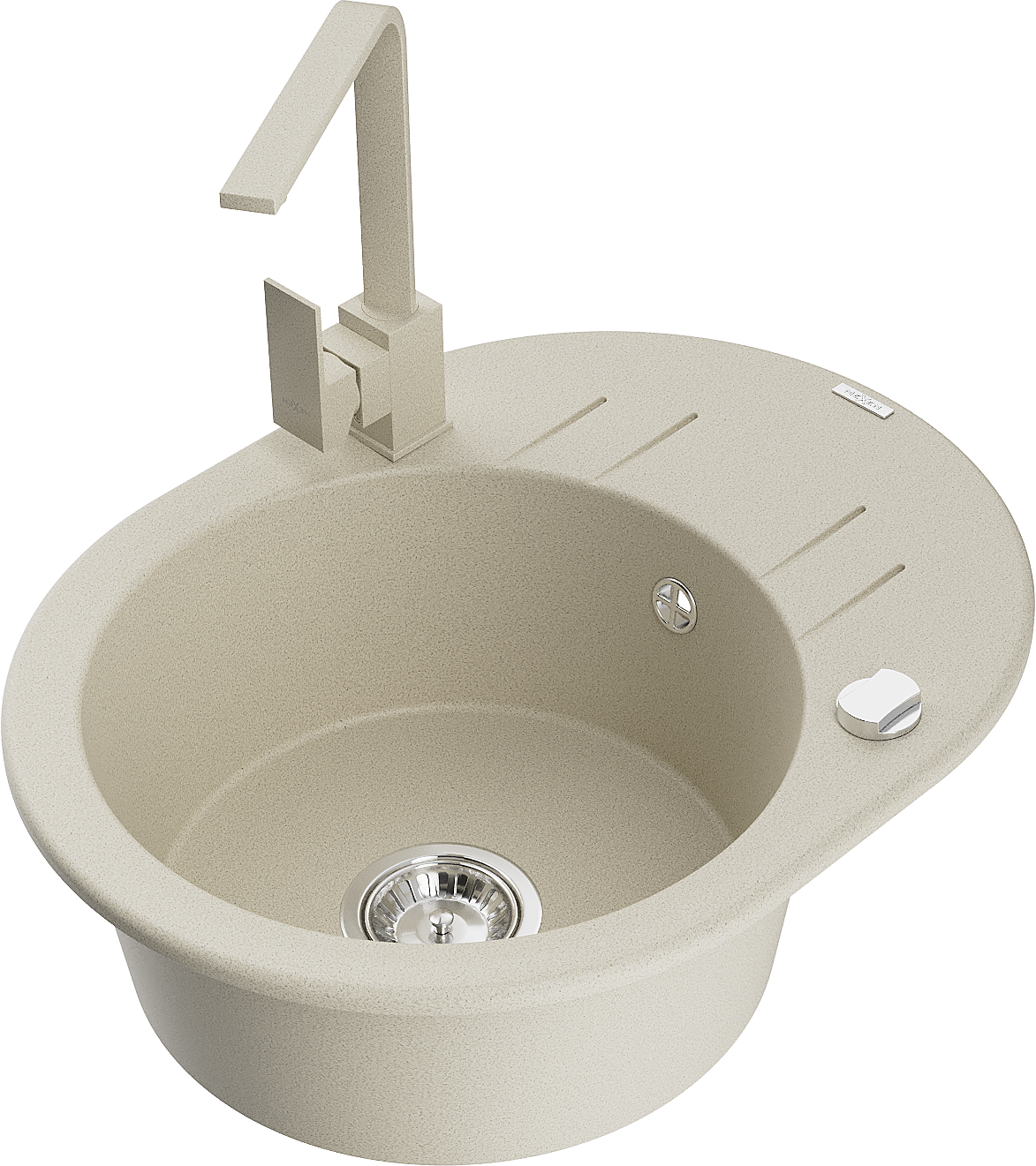 Mexen Kevin évier granit 1 bac avec égouttoir et robinet de cuisine Rita, beige - 6517-69-670300-69