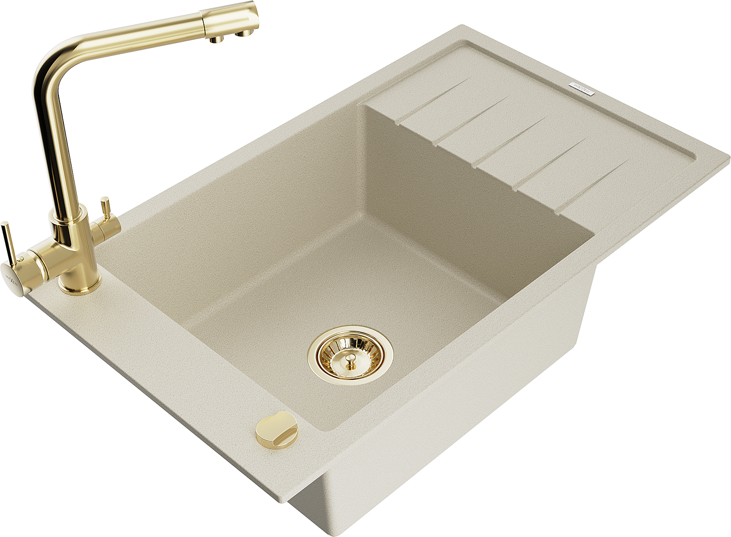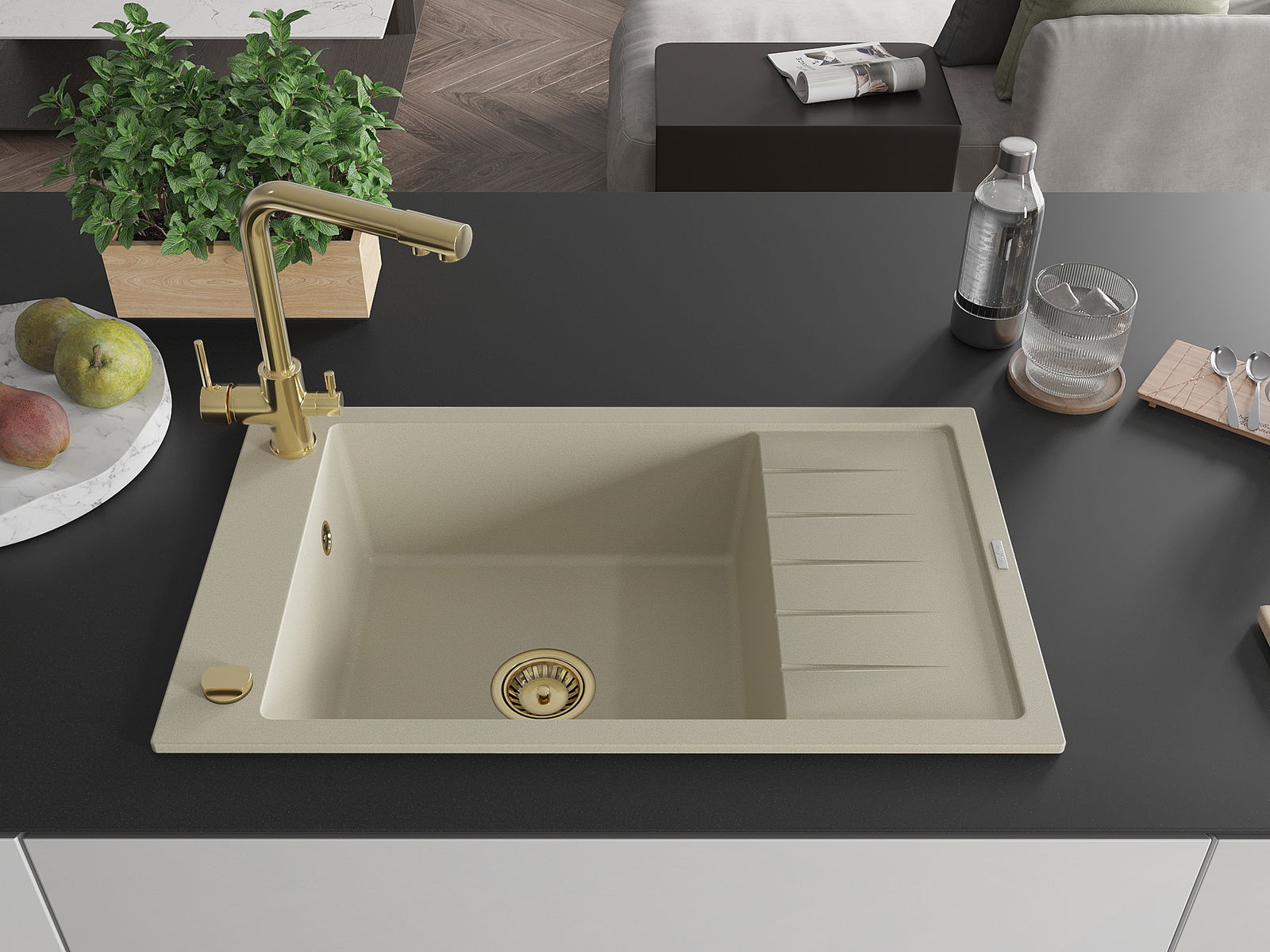 Mexen Elias évier en granit à 1 bac avec égouttoir et robinet de cuisine Duero, beige - 6511-69-671600-50