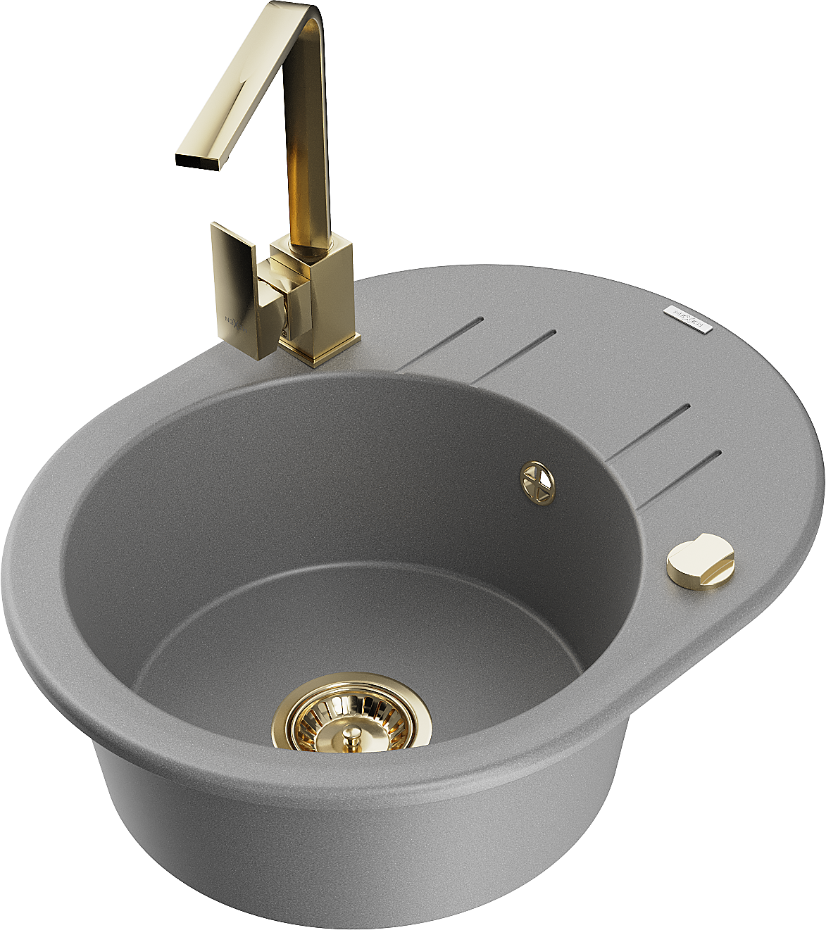Mexen Kevin évier en granit 1 bac avec égouttoir et robinet de cuisine Rita, gris - 6517-71-670300-50