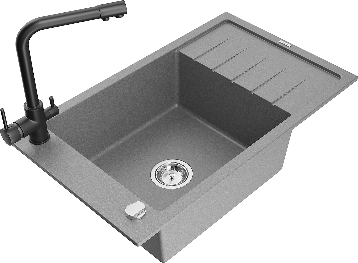 Mexen Elias évier en granit 1 bac avec égouttoir et robinet de cuisine Duero, gris - 6511-71-671600-70
