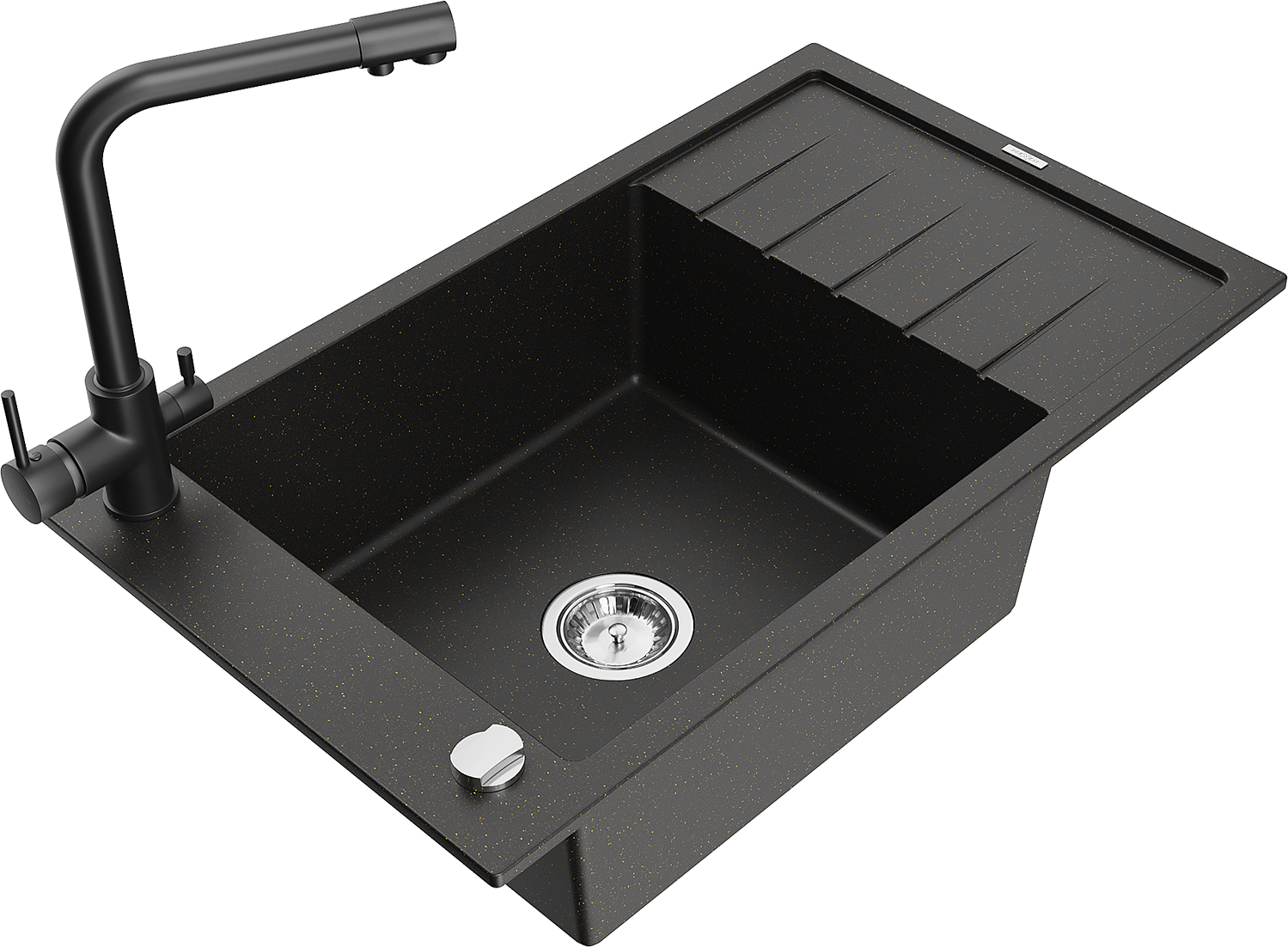 Mexen Elias évier en granit 1 bassin avec égouttoir et robinet de cuisine Duero, noir/or métallisé - 6511-75-671600-70