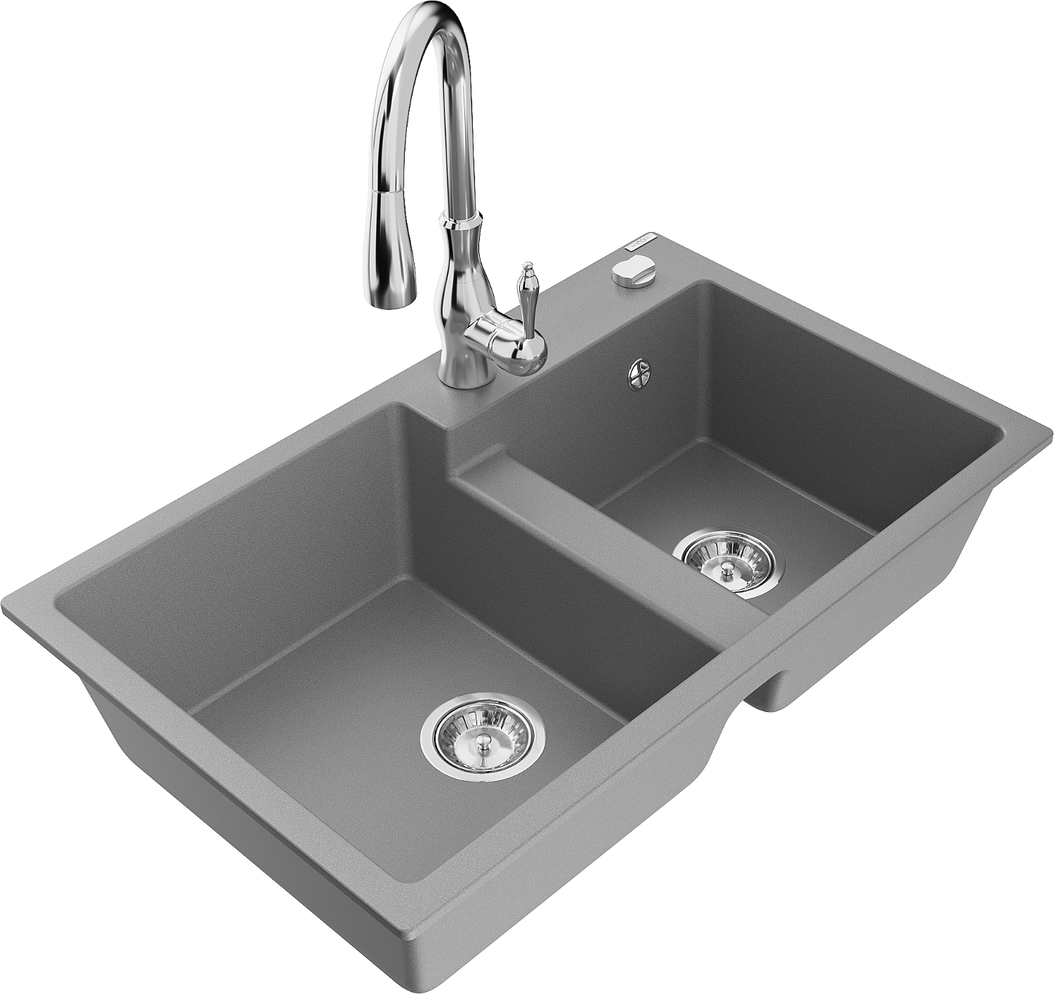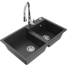Mexen Tomas évier en granit 2 bacs avec robinet de cuisine Savita, gris - 6516-71-672601-00