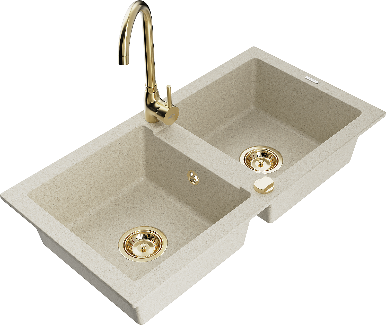 Mexen Mario évier granit 2 bacs avec robinet de cuisine Telma, beige - 6504-69-670200-50