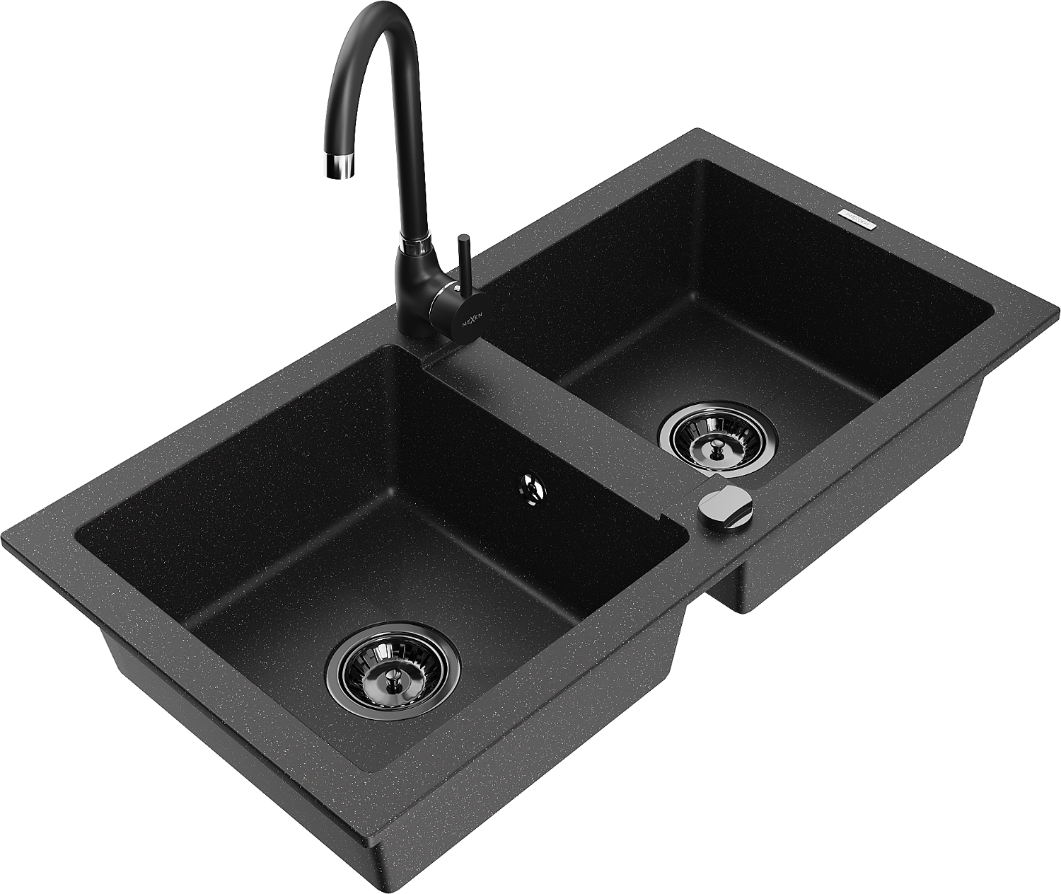 Mexen Mario évier en granit à 2 cuves avec mitigeur de cuisine Telma, noir/argent - 6504-73-670200-70-B