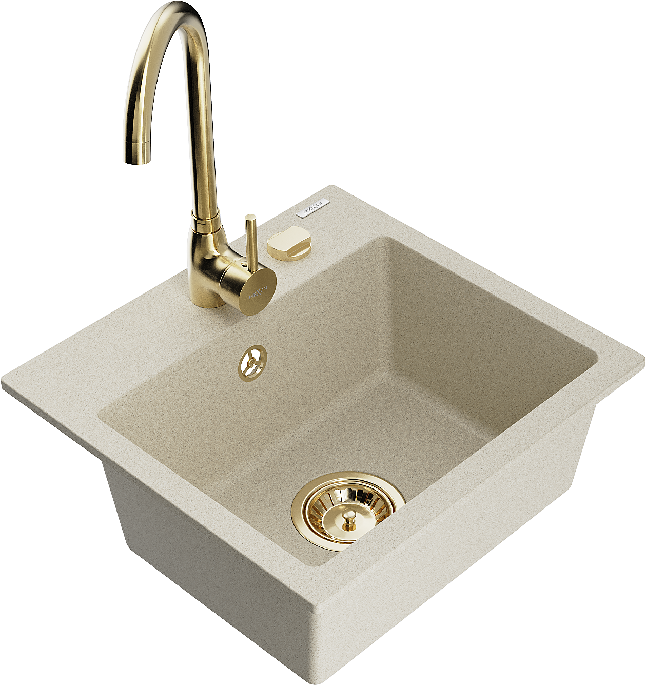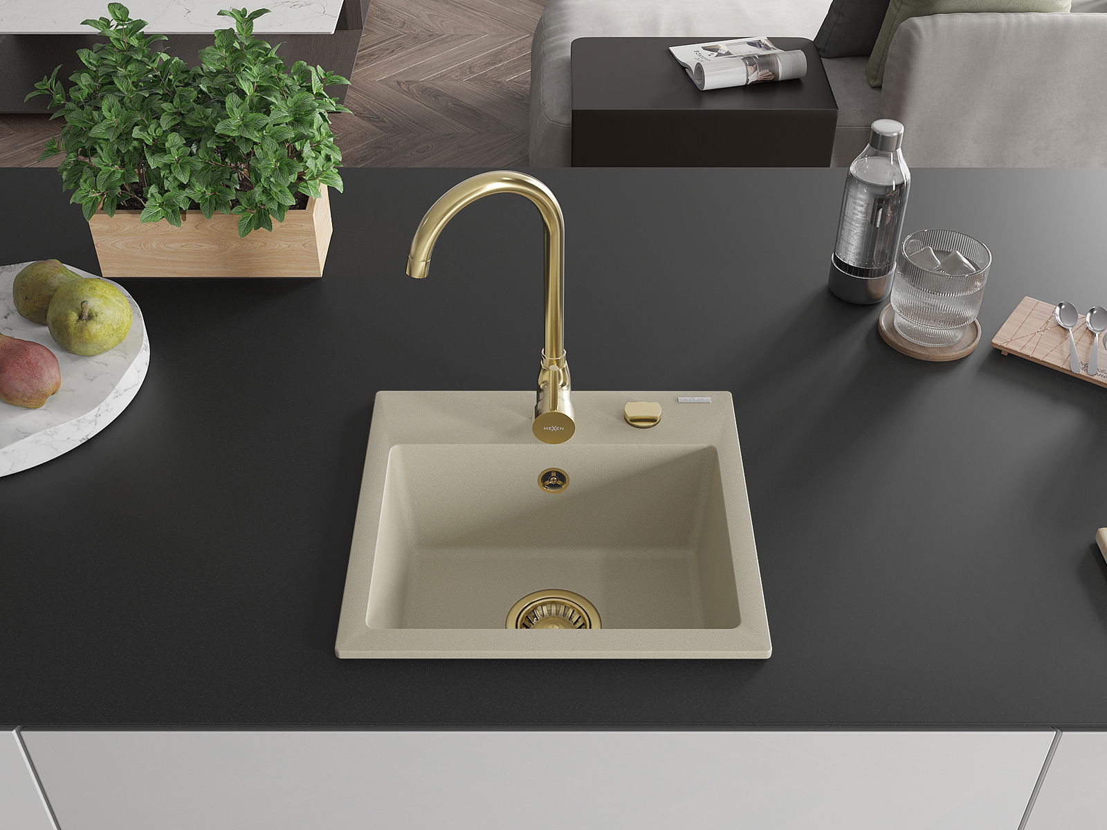 Mexen Milo évier en granit 1 bac avec robinet de cuisine Telma, beige - 6505-69-670200-50