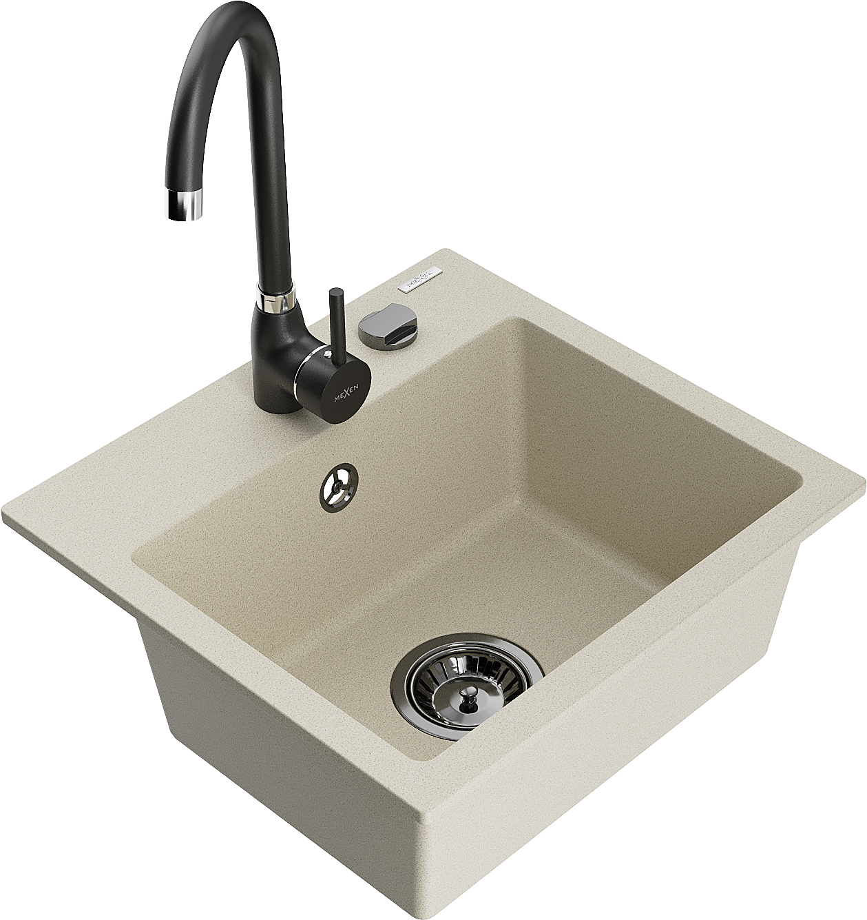 Mexen Milo évier en granit 1 bac avec robinet de cuisine Telma, beige - 6505-69-670200-70