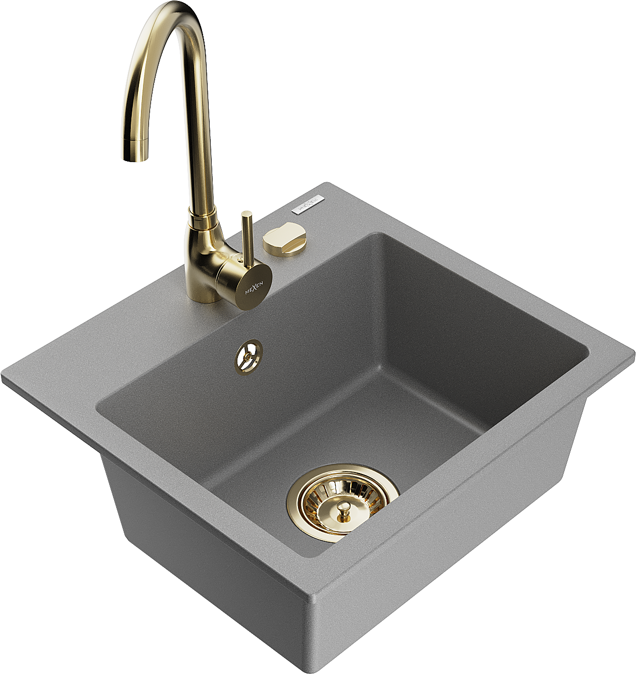 Mexen Milo évier en granit 1 bac avec mitigeur de cuisine Telma, gris - 6505-71-670200-50