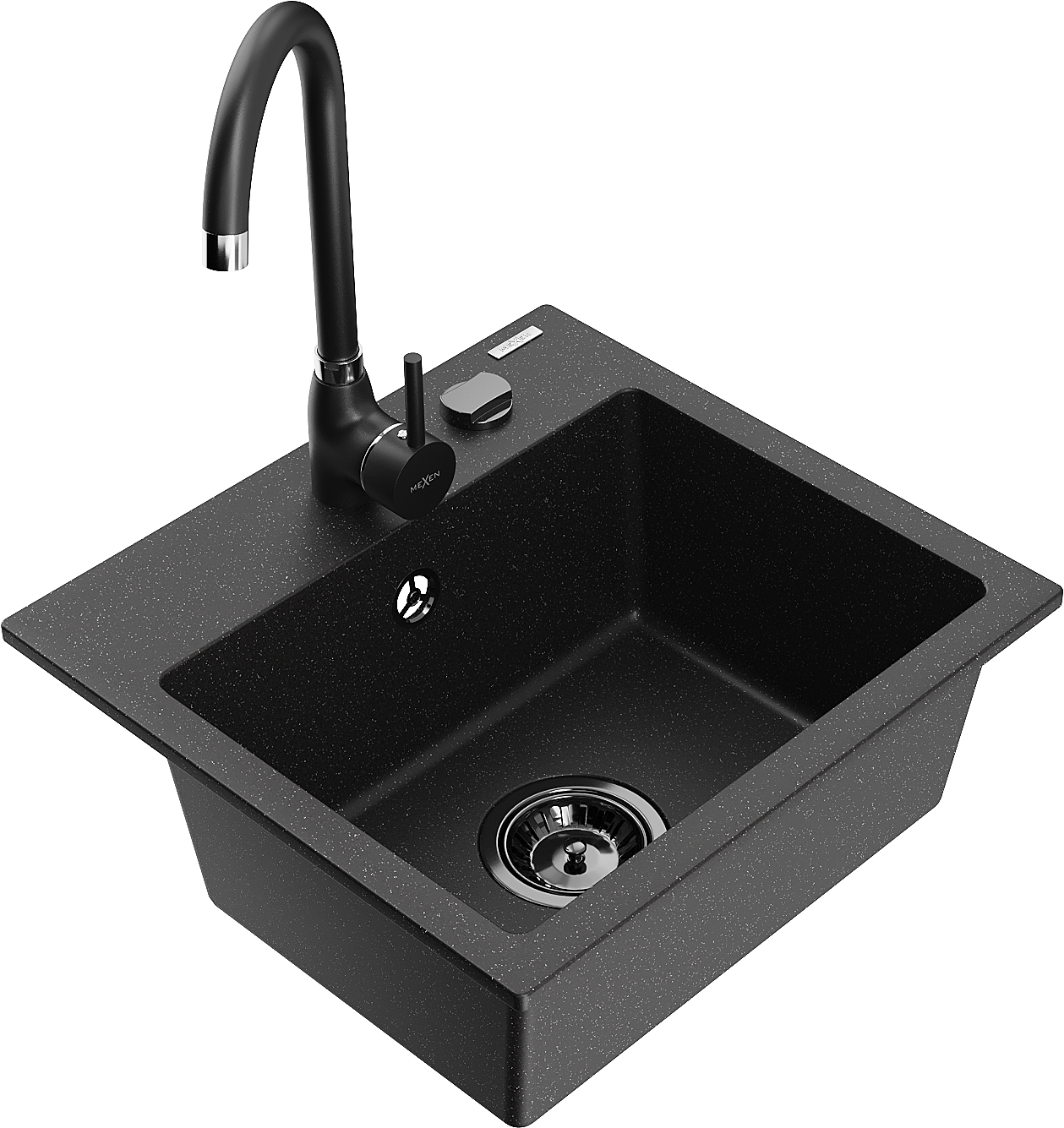 Mexen Milo évier en granit 1-bac avec robinet de cuisine Telma, noir/argent - 6505-73-670200-70-B