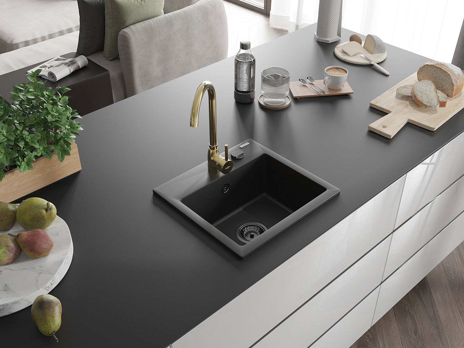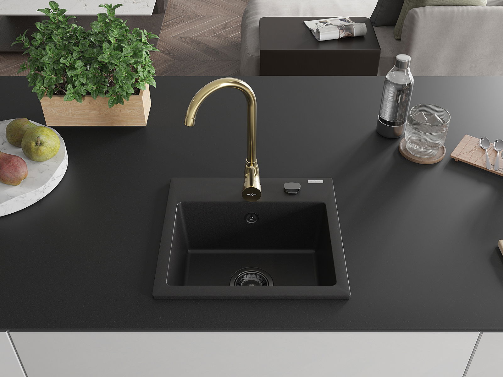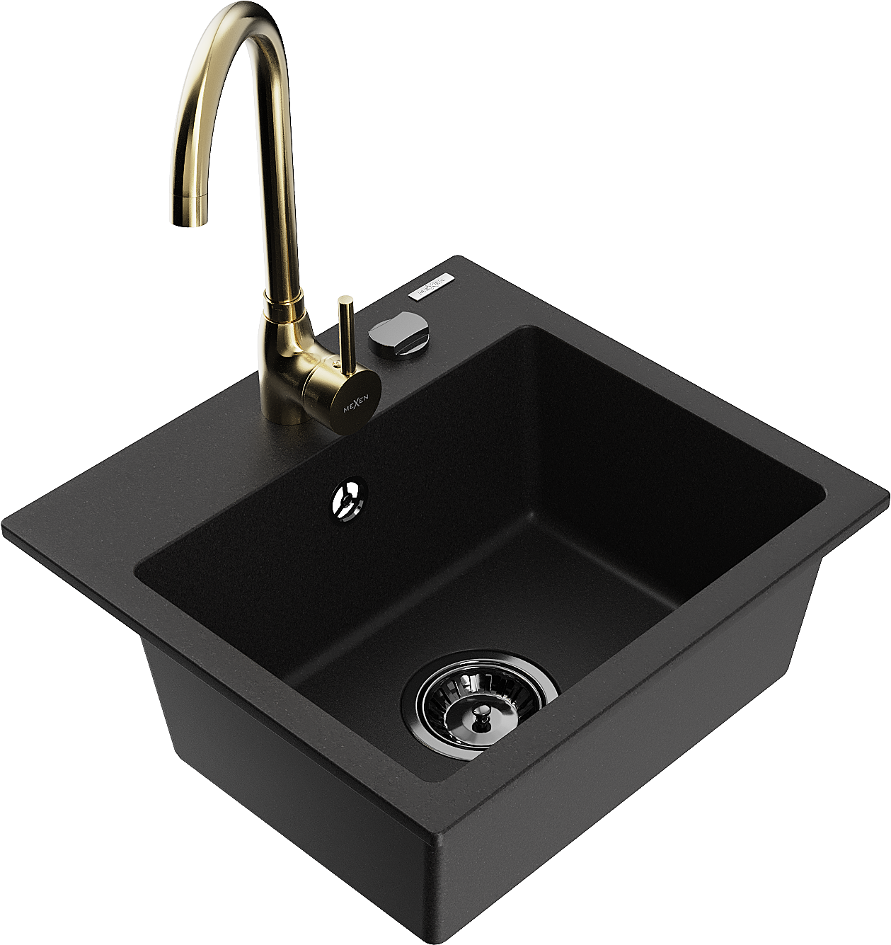 Mexen Milo évier en granit 1 bac avec robinet de cuisine Telma, noir - 6505-77-670200-50-B