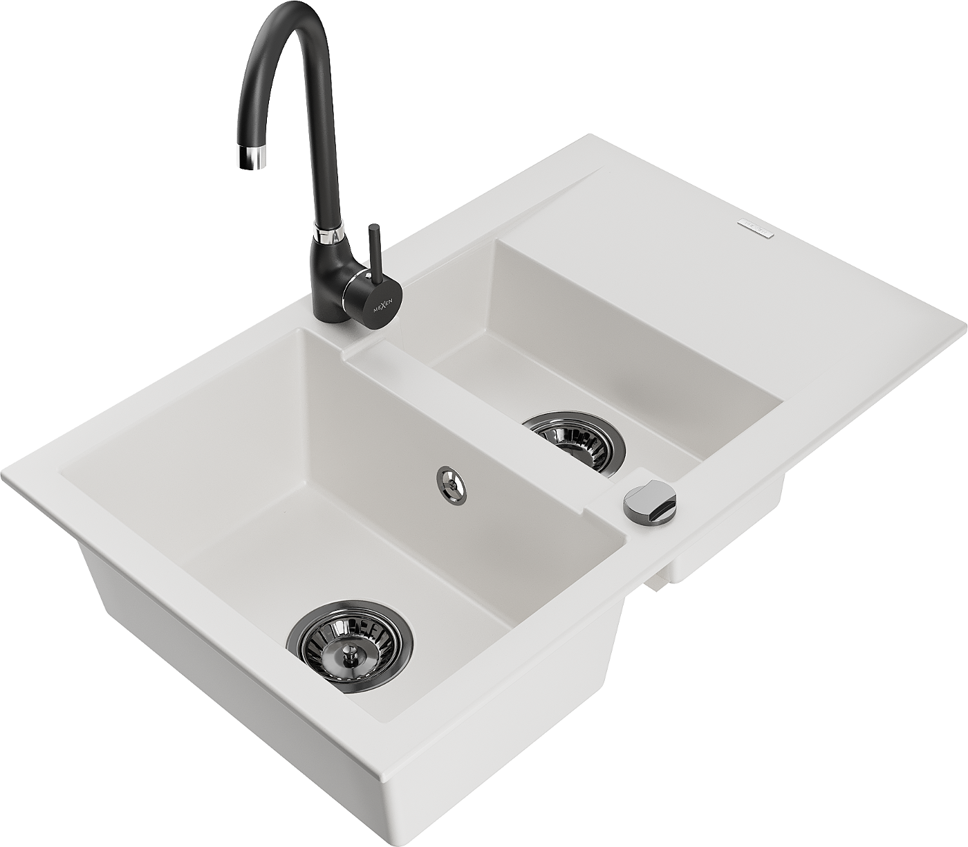 Mexen Gaspar évier en granit 1,5 bac avec égouttoir et robinet de cuisine Telma, blanc - 6507-20-670200-70