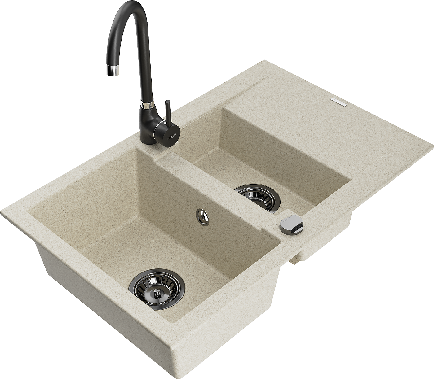 Mexen Gaspar évier en granit 1,5-bac avec égouttoir et robinet de cuisine Telma, beige - 6507-69-670200-70