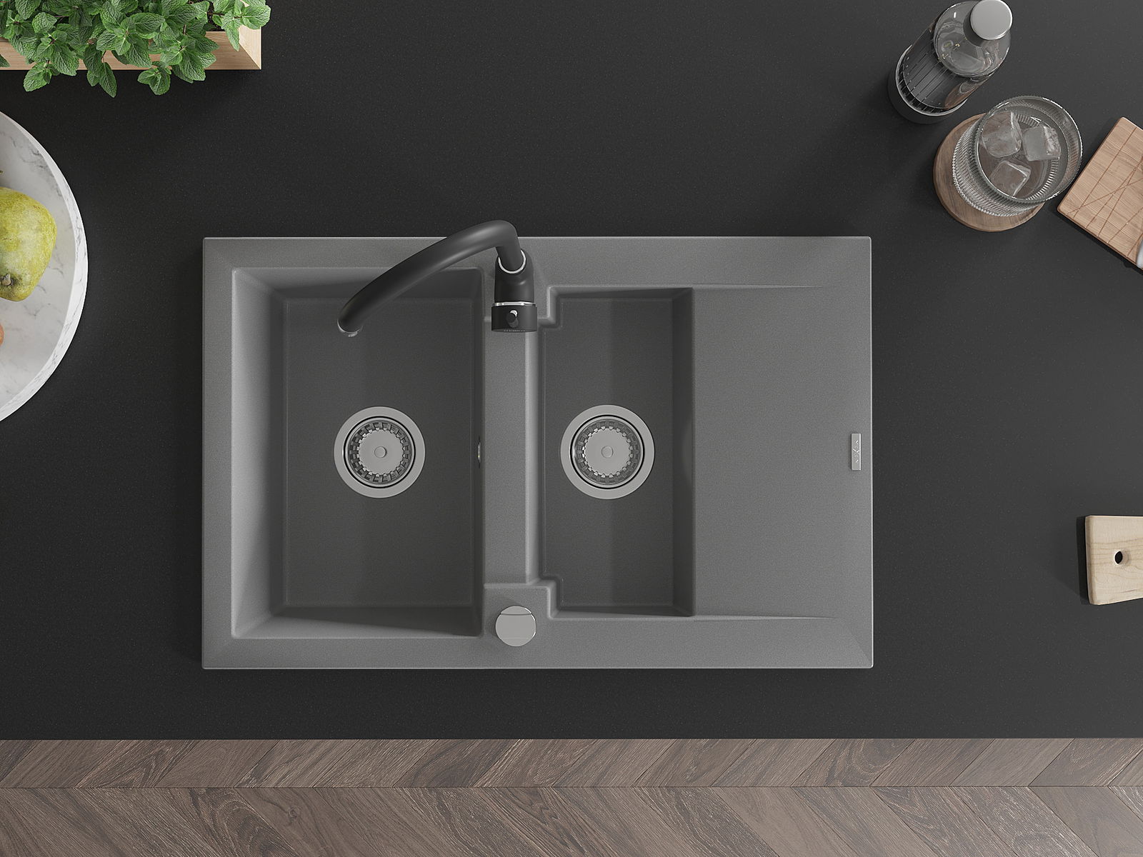 La surface de l'évier est très bien trempée et se distingue par une résistance exceptionnelle aux dommages mécaniques et aux rayures. Ce matériau durable vous permettra de profiter de son bel aspect pendant de nombreuses années.