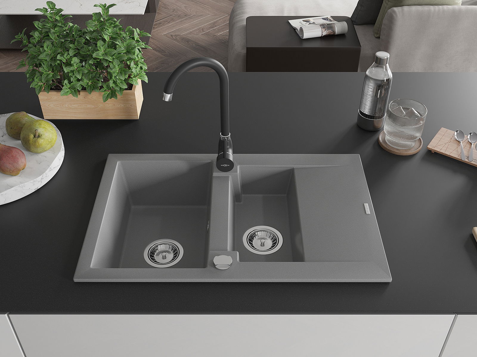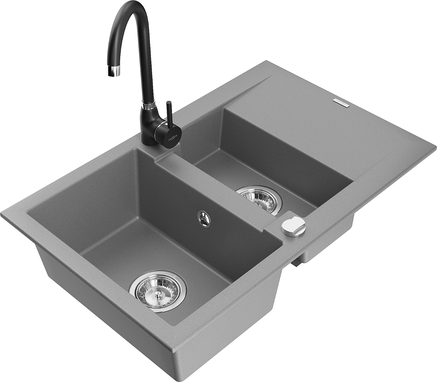 Mexen Gaspar évier en granit 1,5 bac avec égouttoir et mitigeur cuisine Telma, gris - 6507-71-670200-70