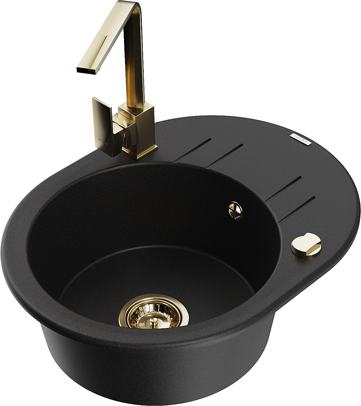 Mexen Kevin évier en granit 1 bac avec égouttoir et robinet de cuisine Rita, noir - 6517-77-670300-50