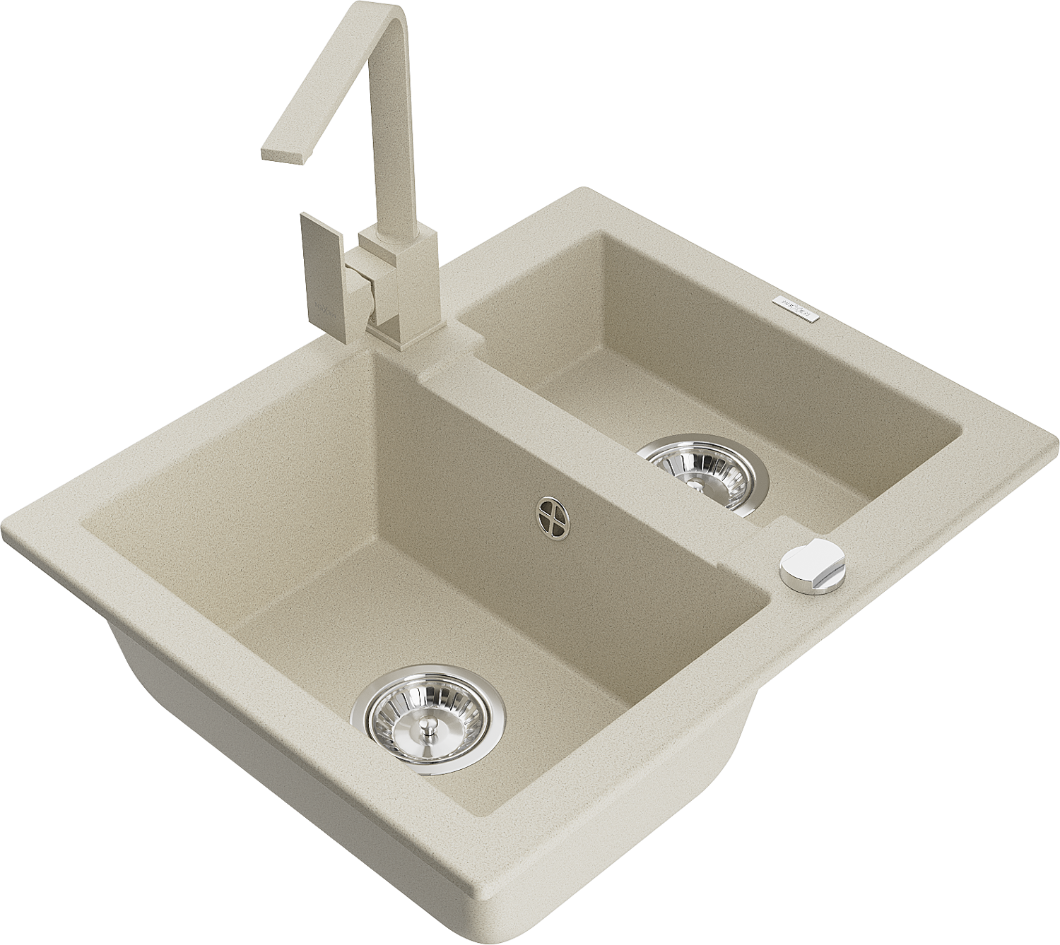 Mexen Carlos évier en granit 1,5-bac avec robinet de cuisine Rita, beige - 6518-69-670300-69
