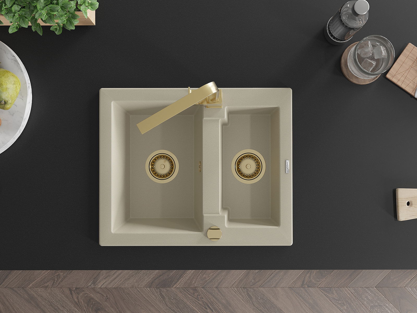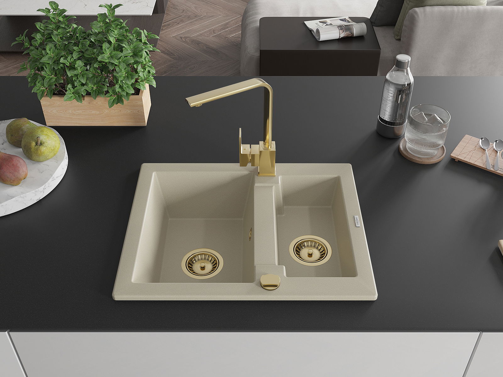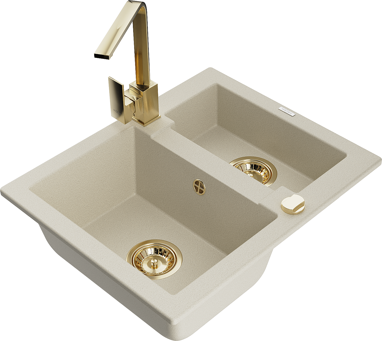 Mexen Carlos évier en granit 1,5-bacs avec robinet de cuisine Rita, beige - 6518-69-670300-50