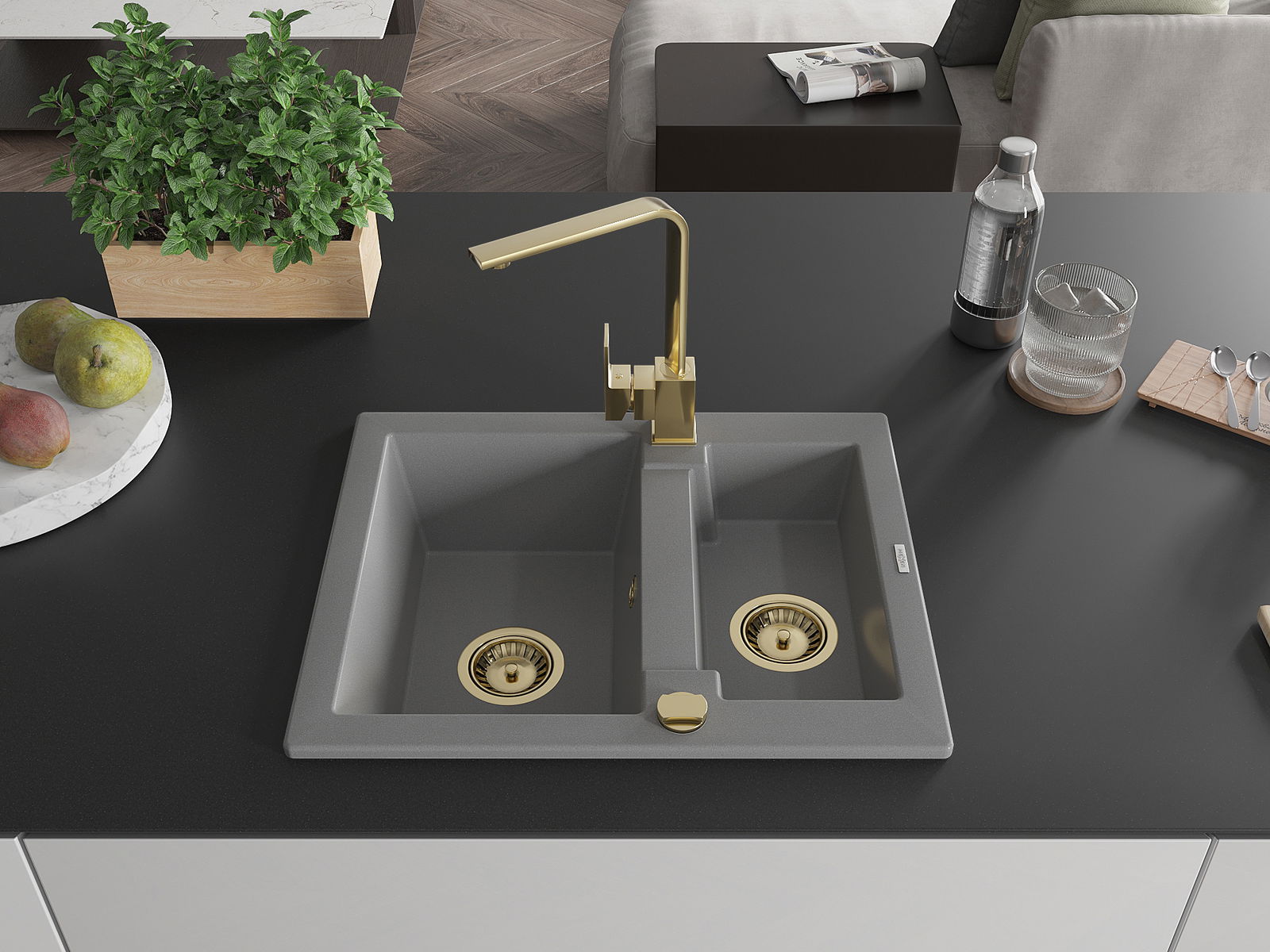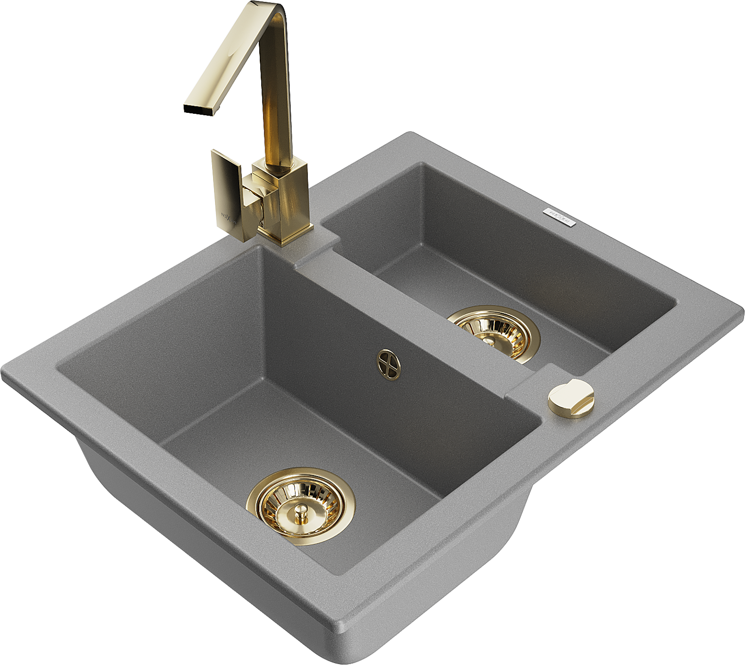 Mexen Carlos évier en granit à 1,5 bac avec mitigeur de cuisine Rita, gris - 6518-71-670300-50