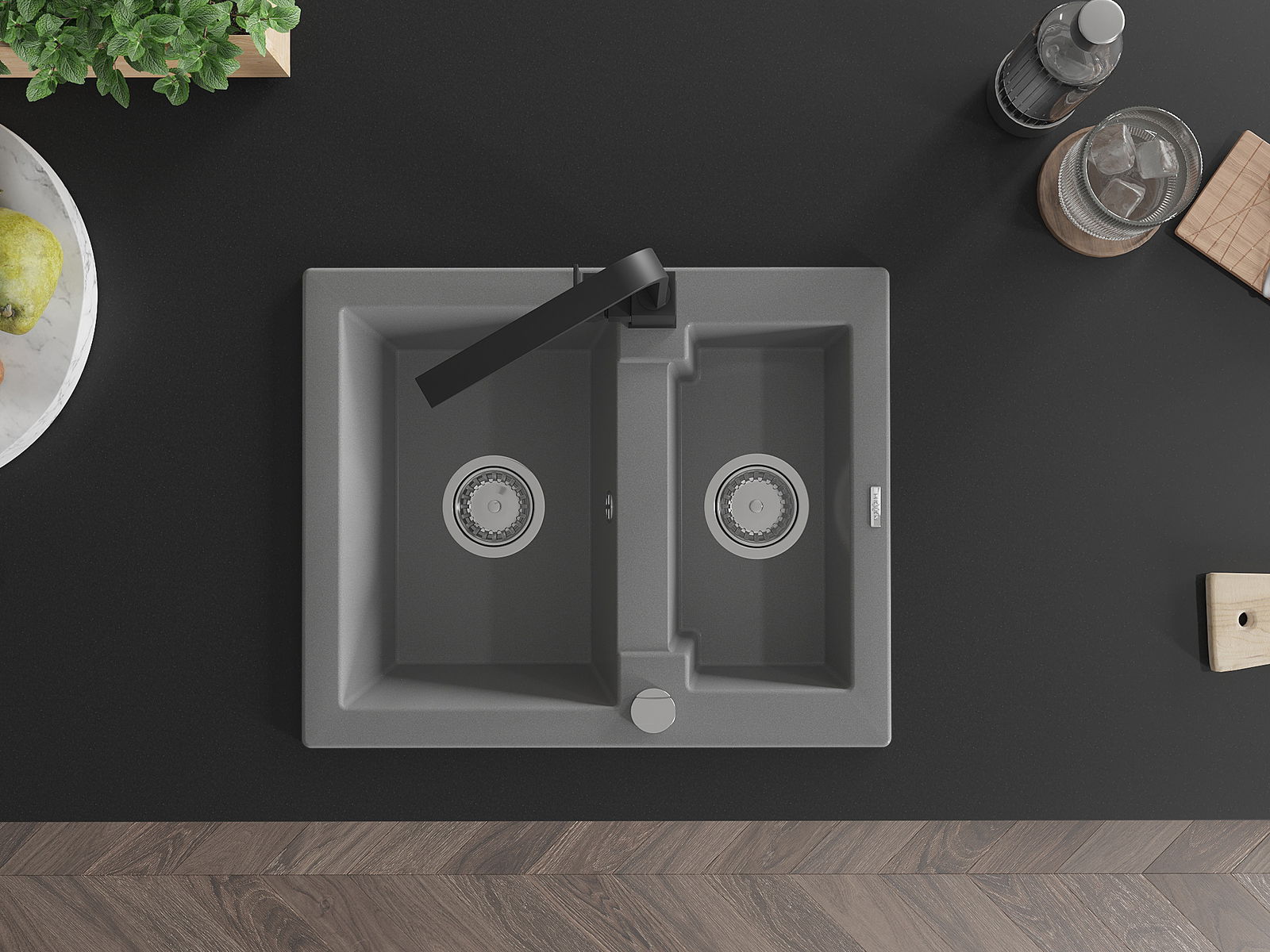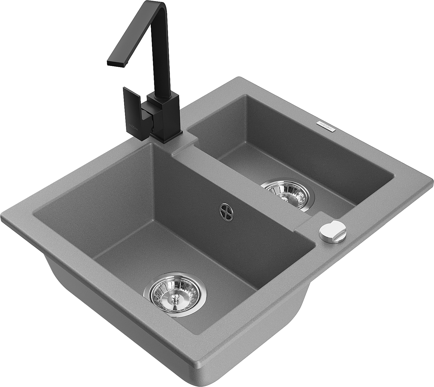 Mexen Carlos évier en granit 1,5 cuve avec mitigeur de cuisine Rita, gris - 6518-71-670300-70