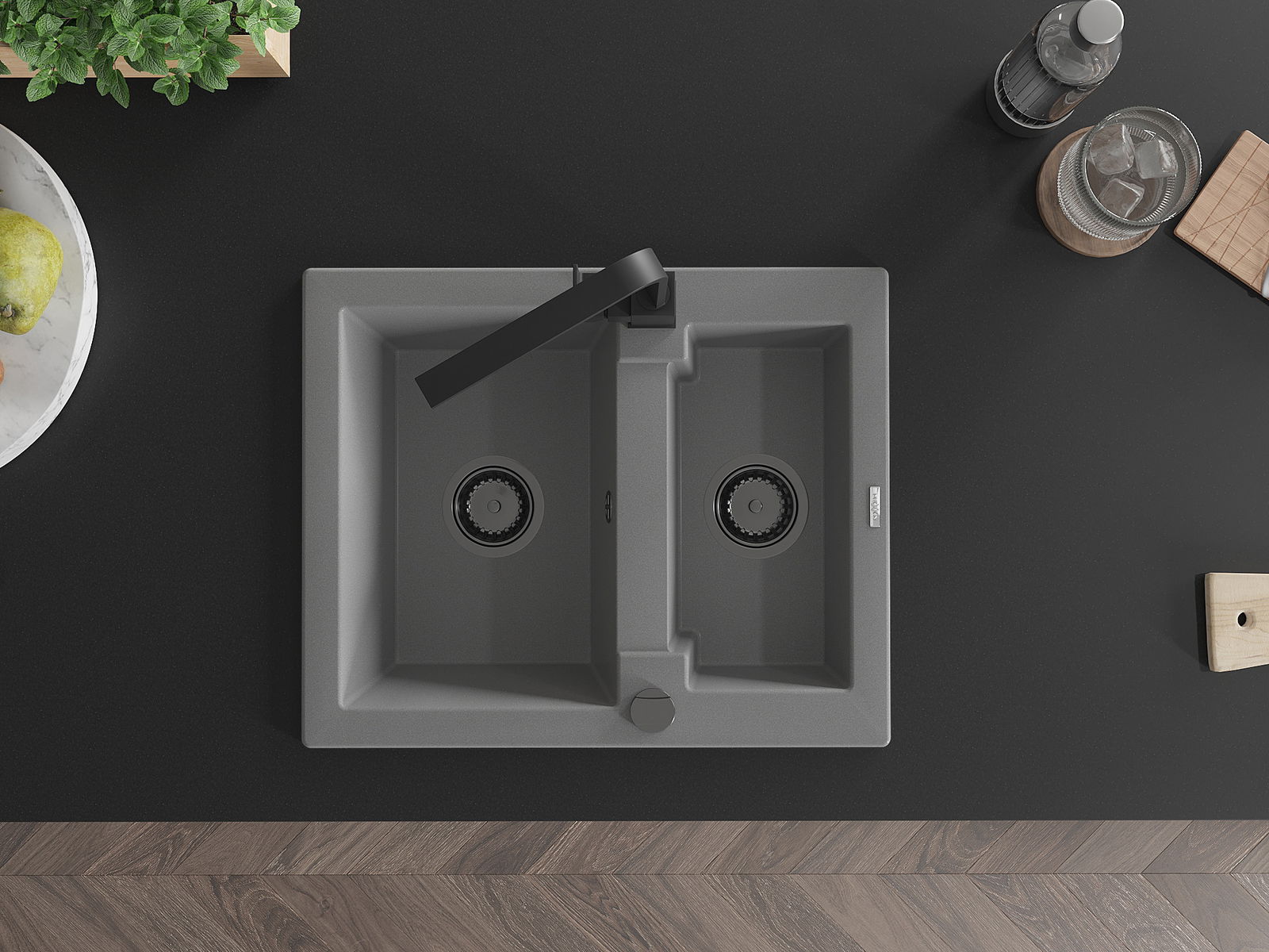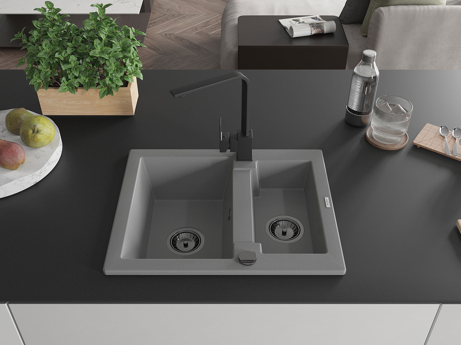Mexen Carlos évier de cuisine en granit 1,5 bac avec robinet de cuisine Rita, gris - 6518-71-670300-70-B